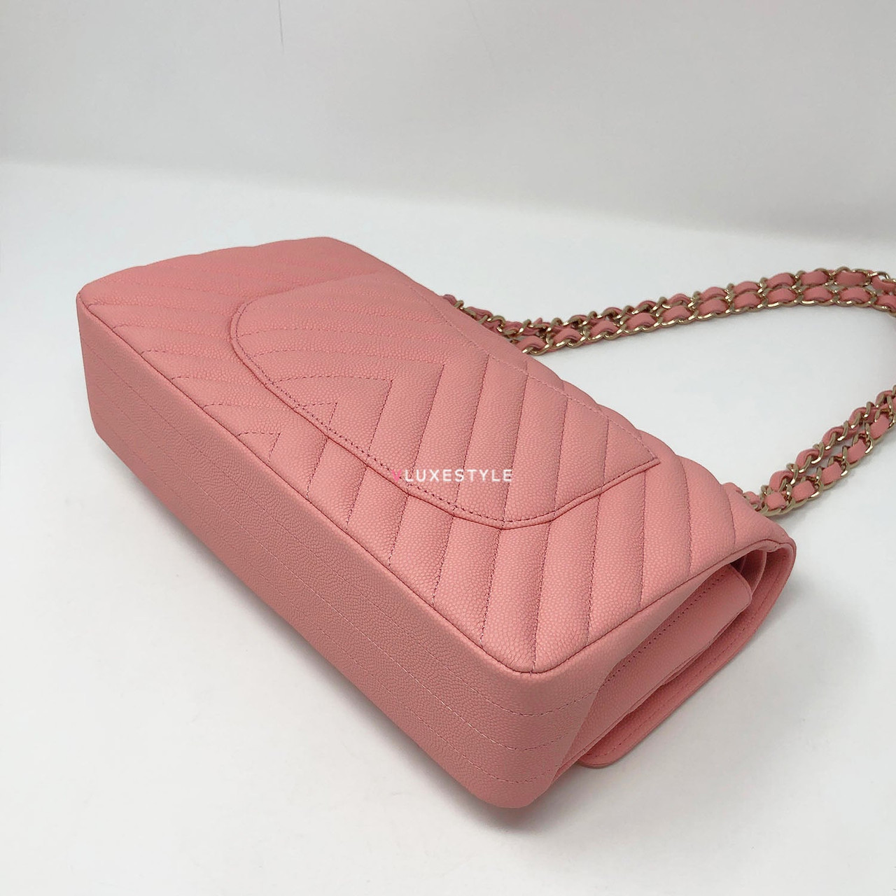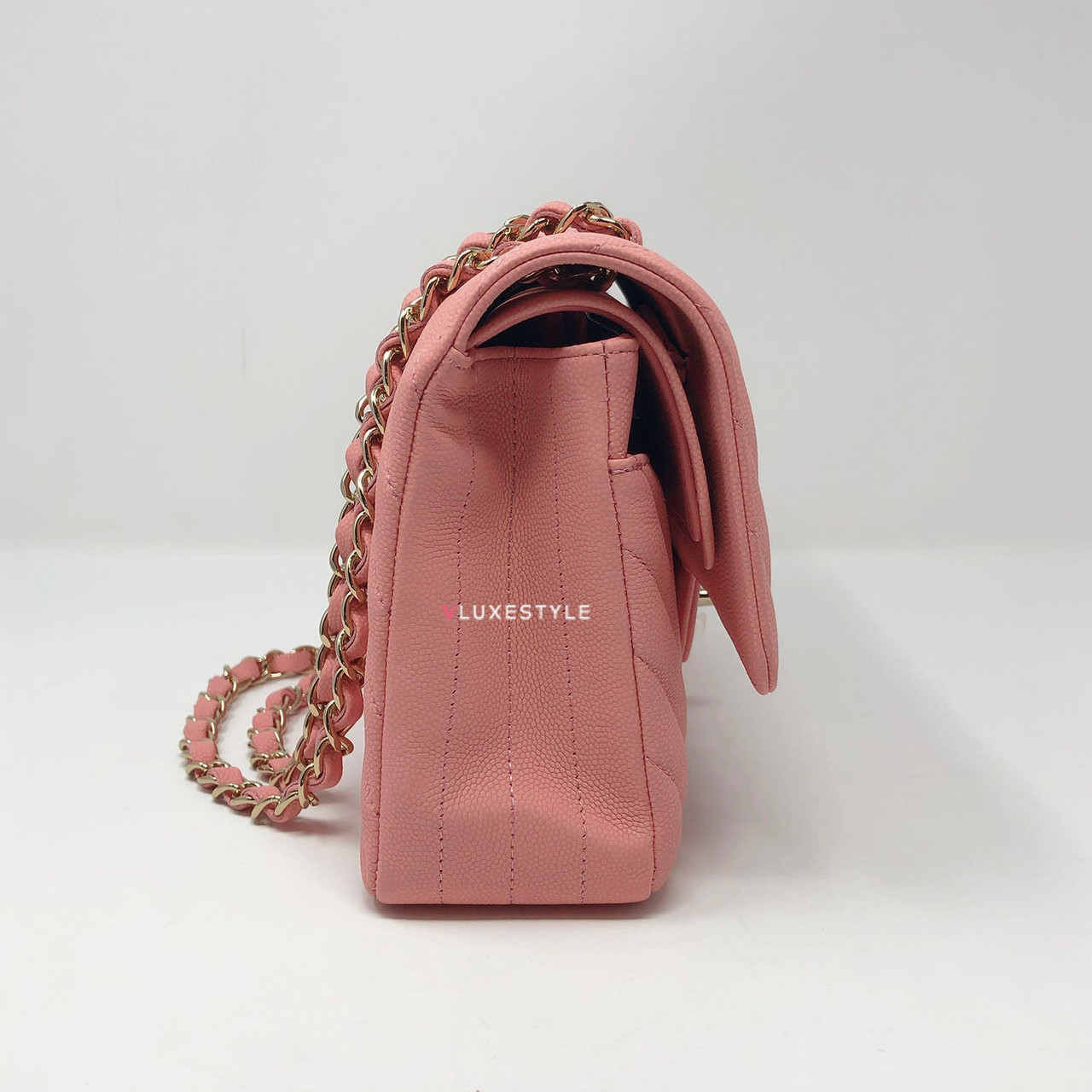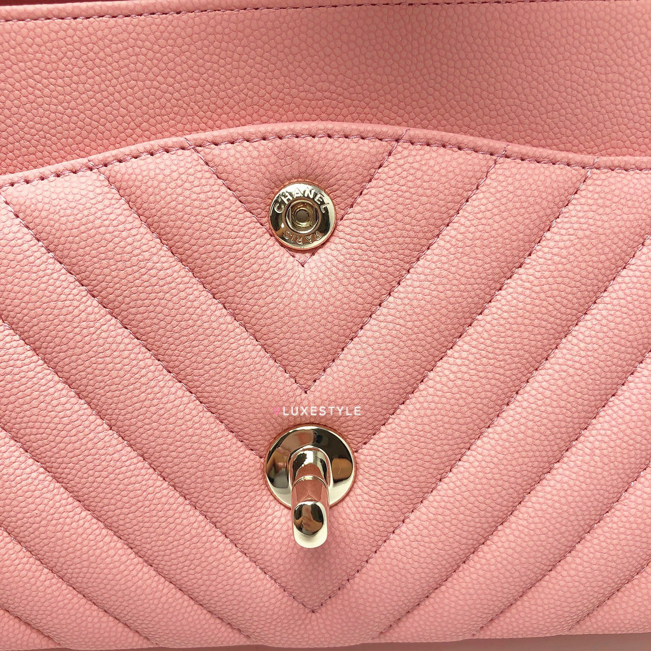 Brand new with tags! Authentic Chanel 19S Medium Matte Pink Chevron Caviar with light gold hardware. This timeless and stylish shoulder bag is crafted of luxurious matte pink caviar and light gold hardware.