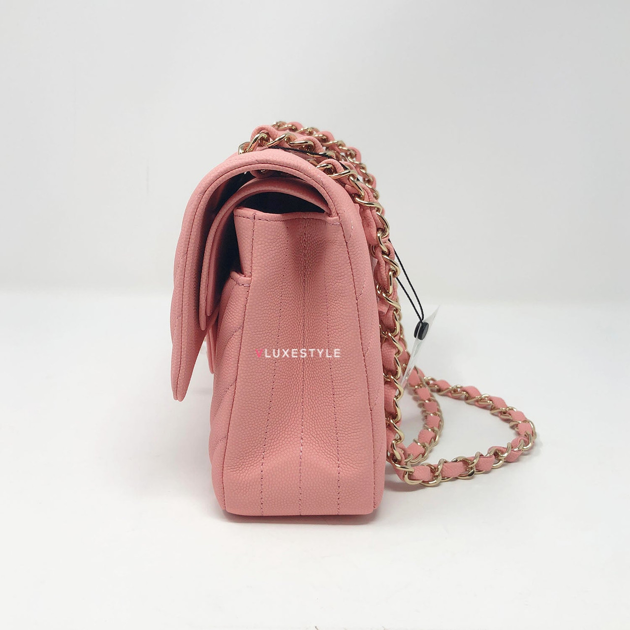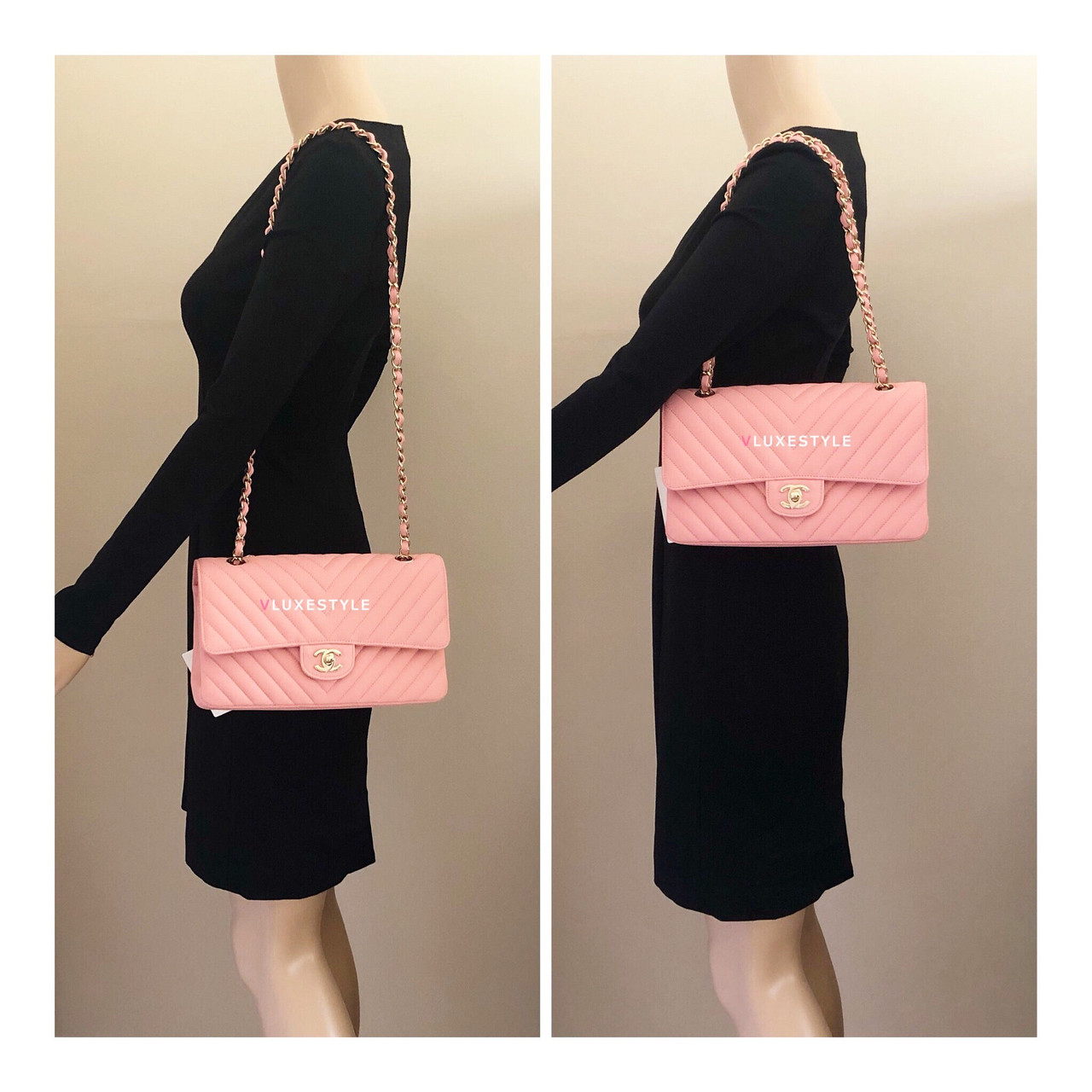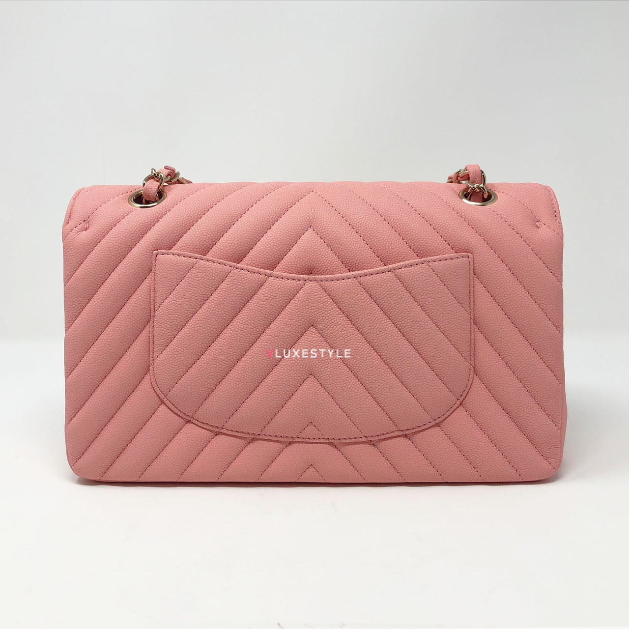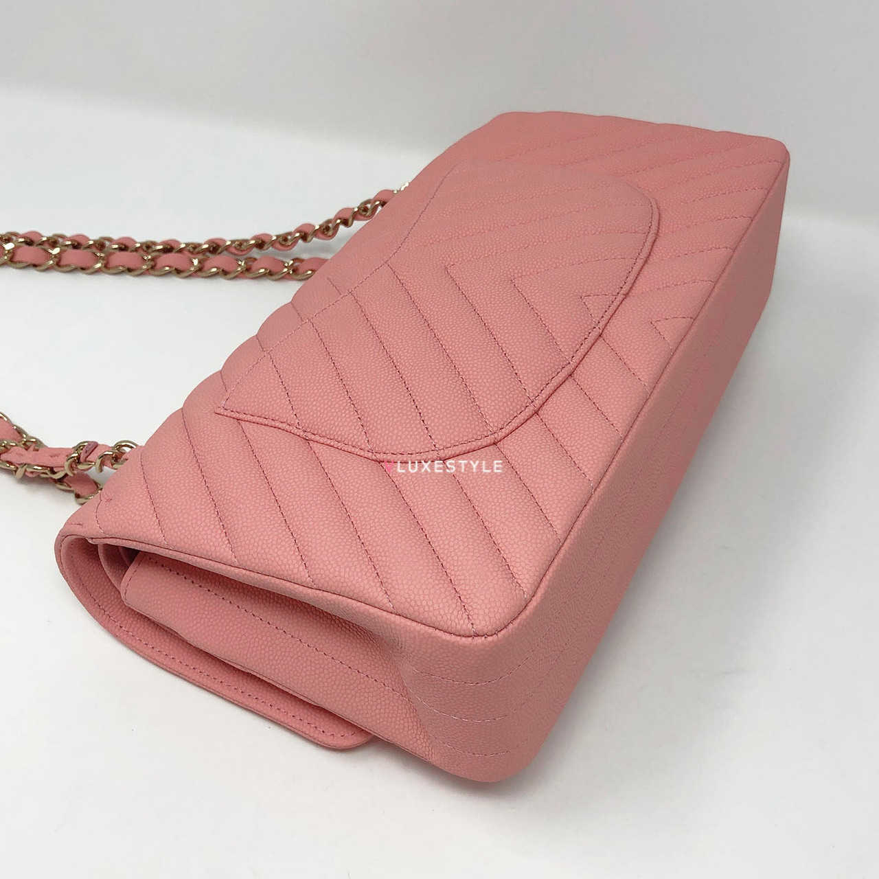 Brand new with tags! Authentic Chanel 19S Medium Matte Pink Chevron Caviar with light gold hardware. This timeless and stylish shoulder bag is crafted of luxurious matte pink caviar and light gold hardware.