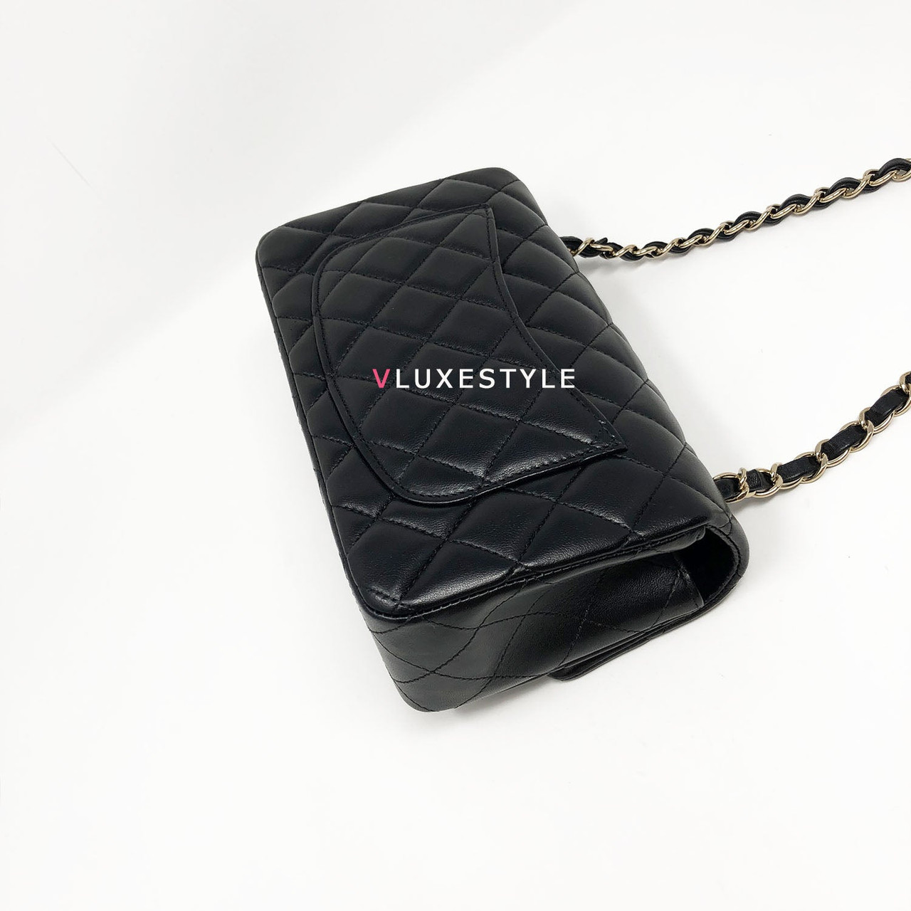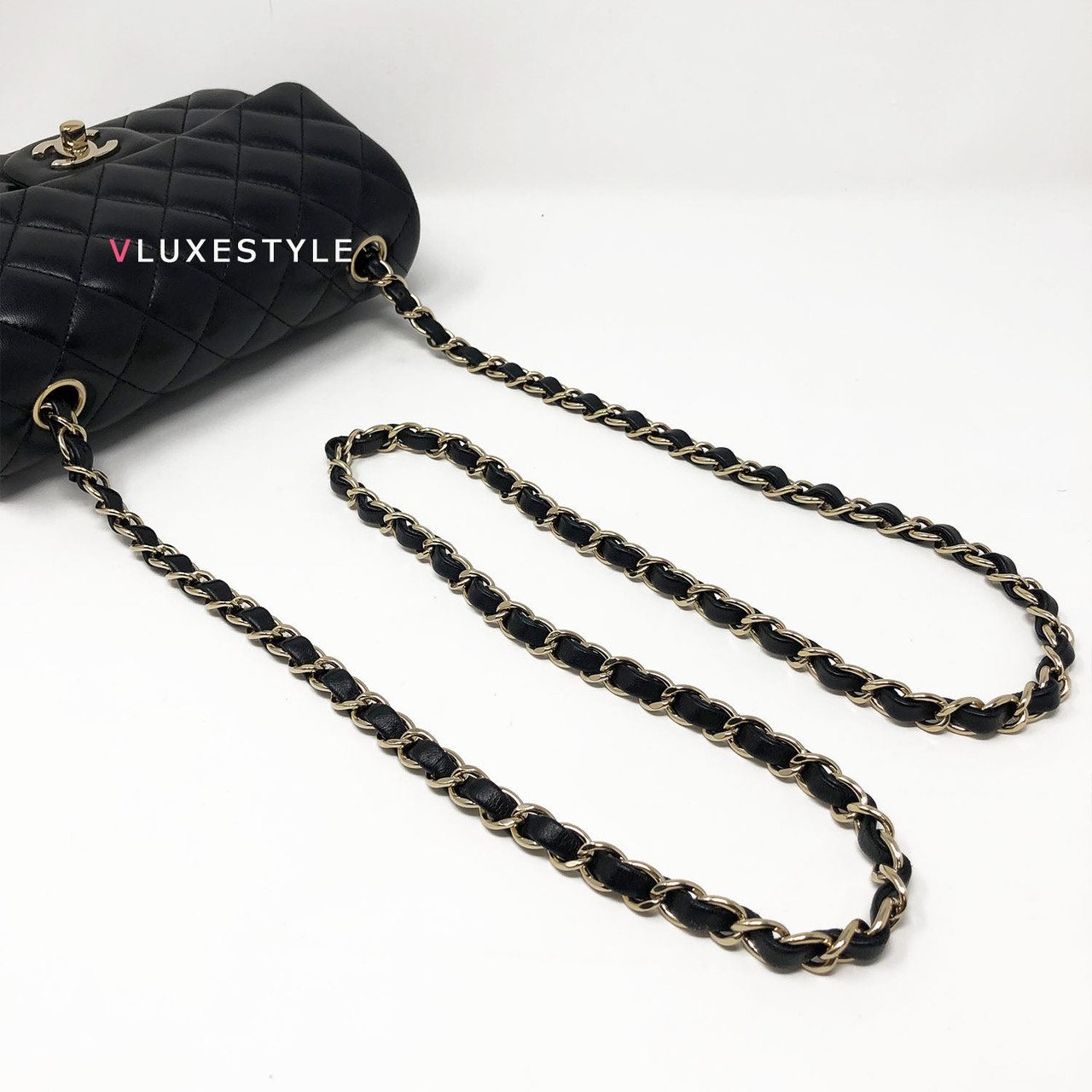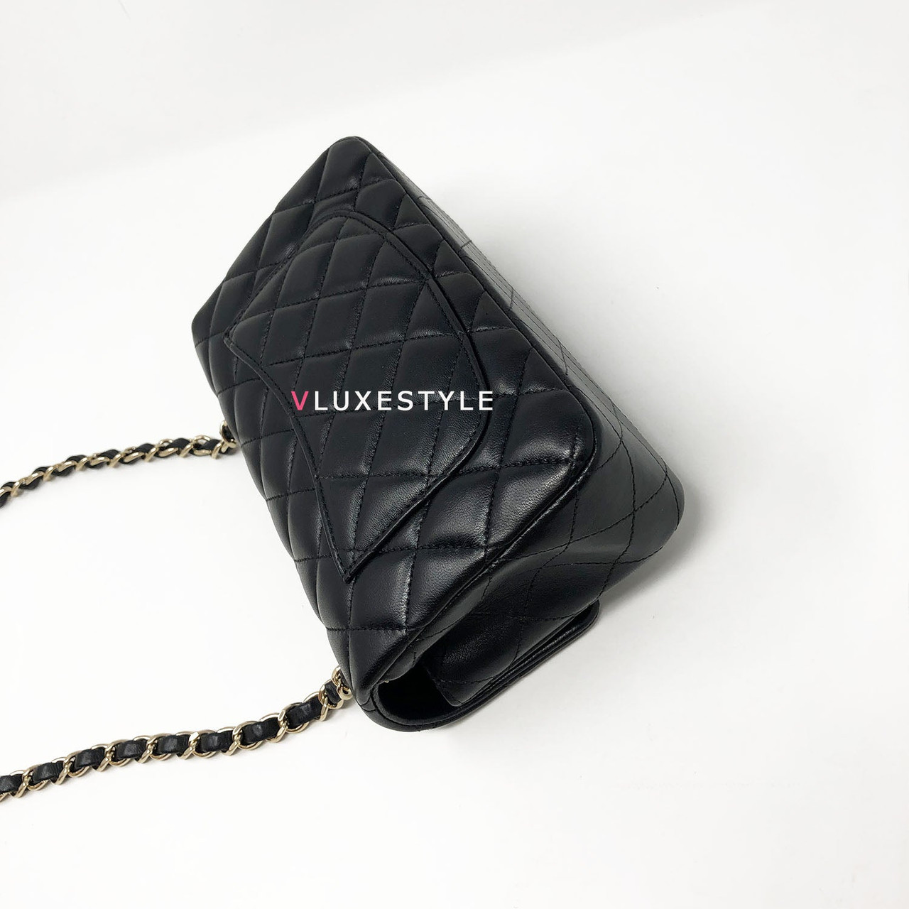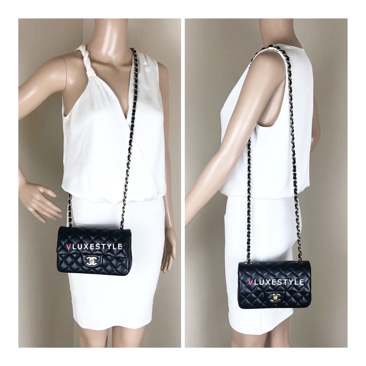 Rare and gorgeous! Chanel 16B Classic Mini Rectangular Black Quilted Lambskin with light gold hardware This stunning shoulder bag is crafted of luxurious lambskin leather in shiny and puffy jet black with light gold hardware. This mini bag can be worn as a crossbody or over-the-shoulder bag.