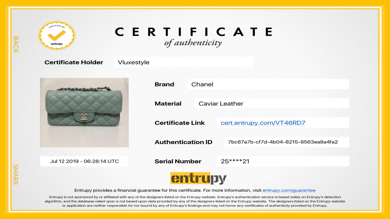 Comes with: Full set with authenticity card, original receipt, dust bag, care booklet, lace, camellia and box with additional third-party Entrupy Authenticity Certificate
