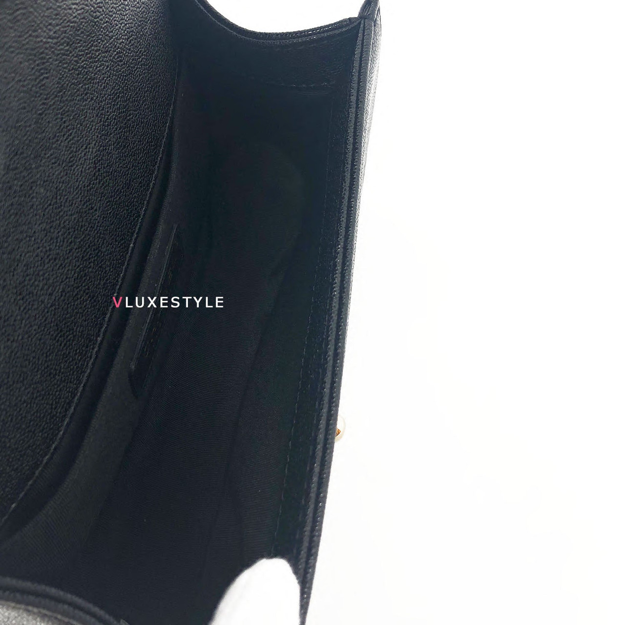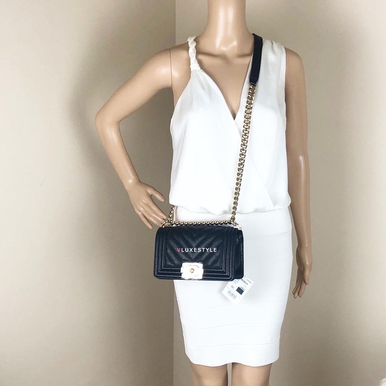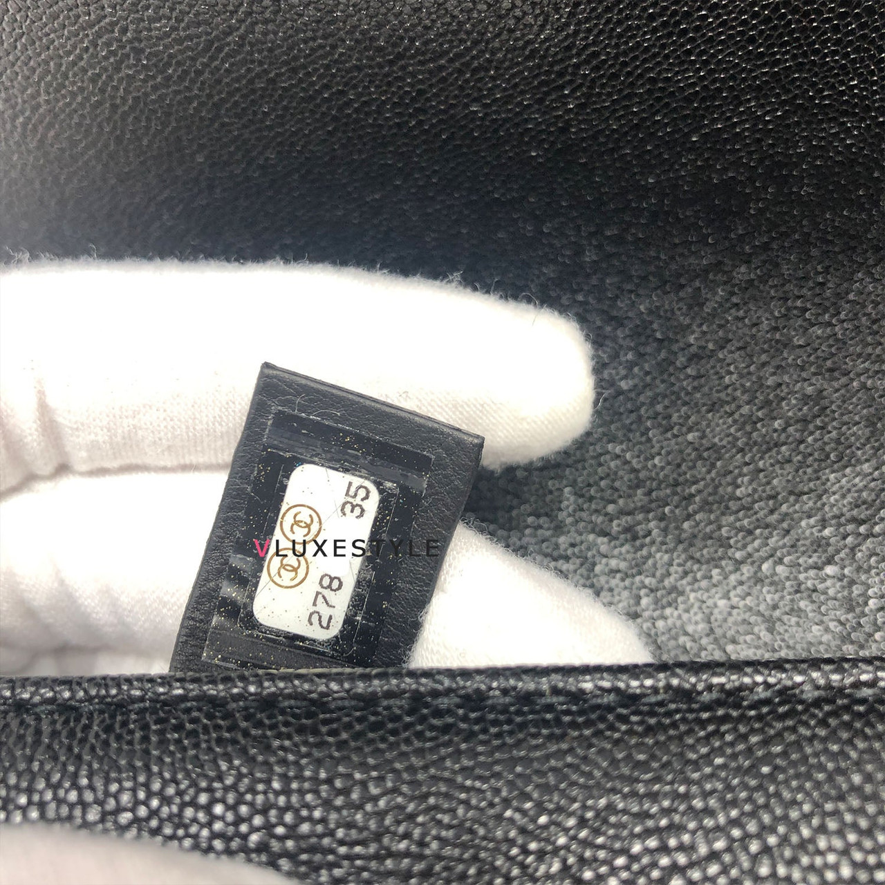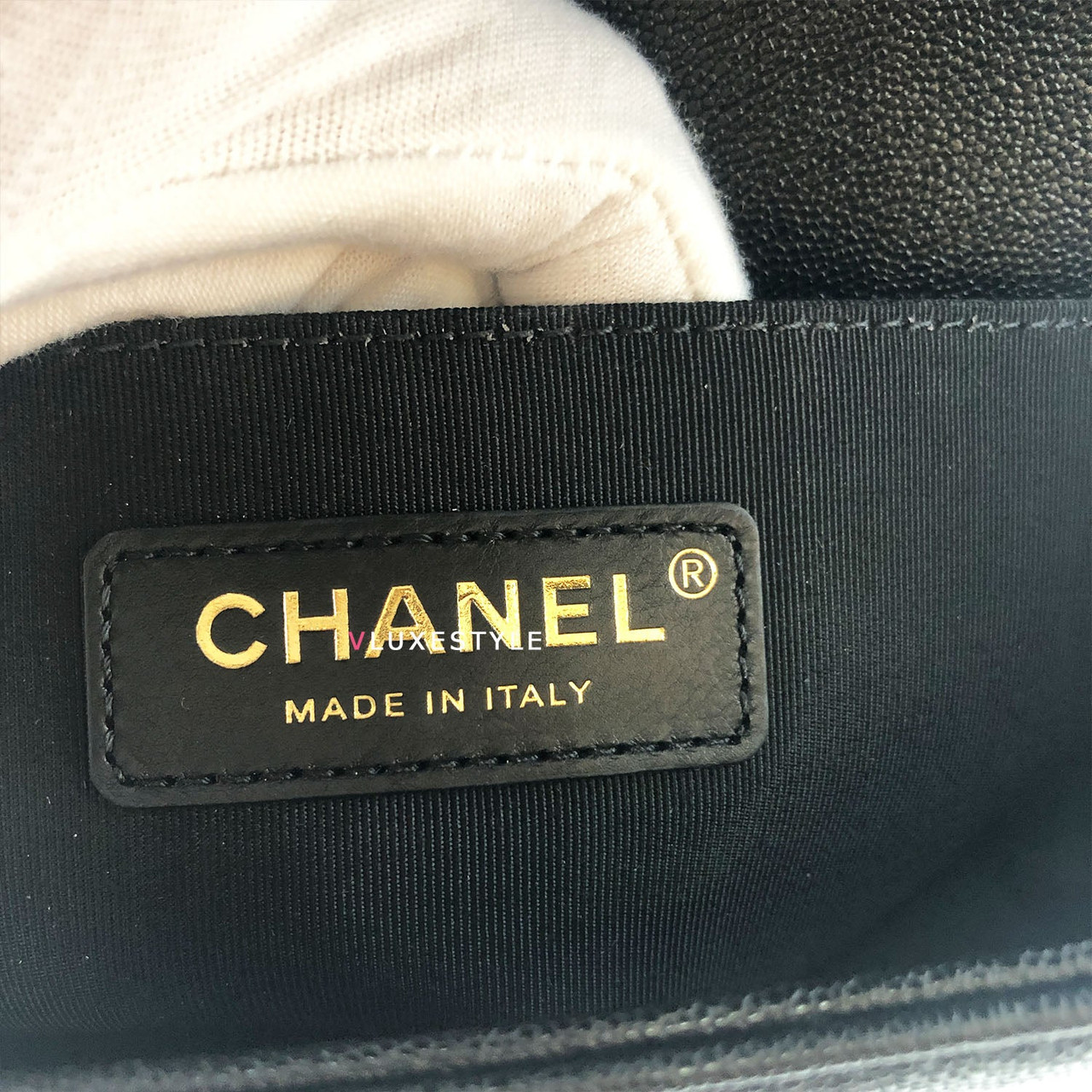 A very rare and highly sought-after combination! Authentic Chanel 19S Small Le Boy Black Chevron Caviar with shiny light gold hardware. This stylish shoulder bag is crafted of luxurious and durable caviar leather in gorgeous shiny jet black, perfectly matched with a beautiful chevron pattern and shiny light gold hardware. This combination will instantly dress up any outfit and effortlessly transition with you into the evening. The bag can be worn long and short over-the-shoulder bag and crossbody.