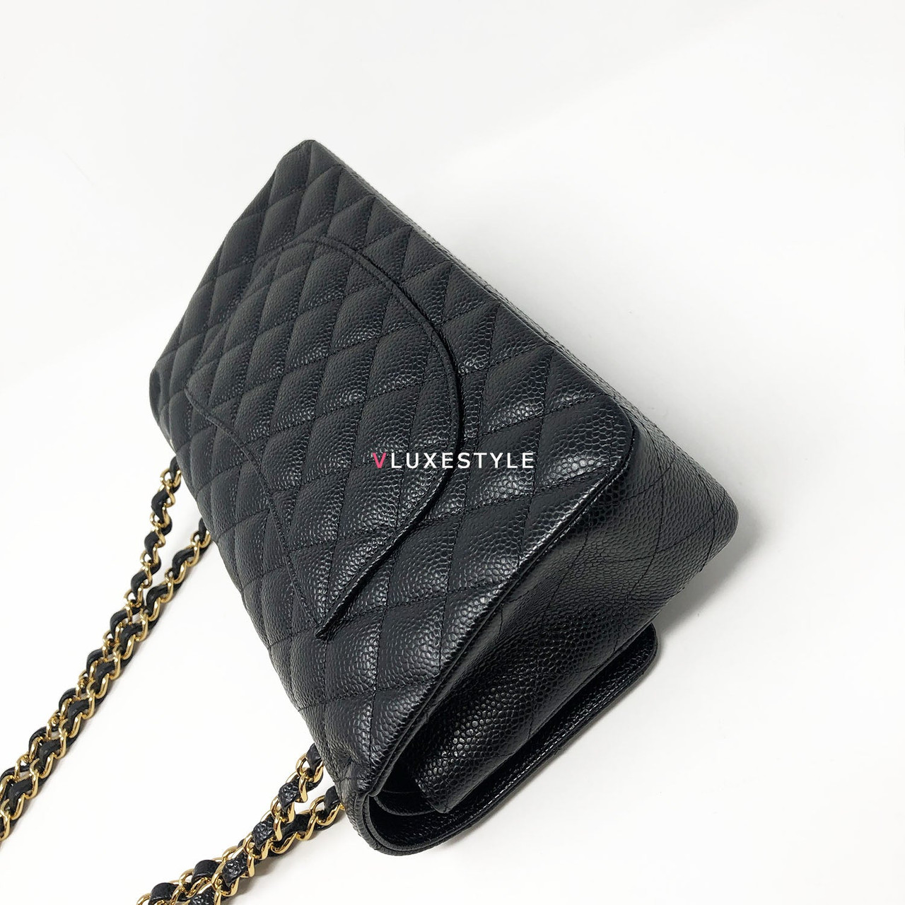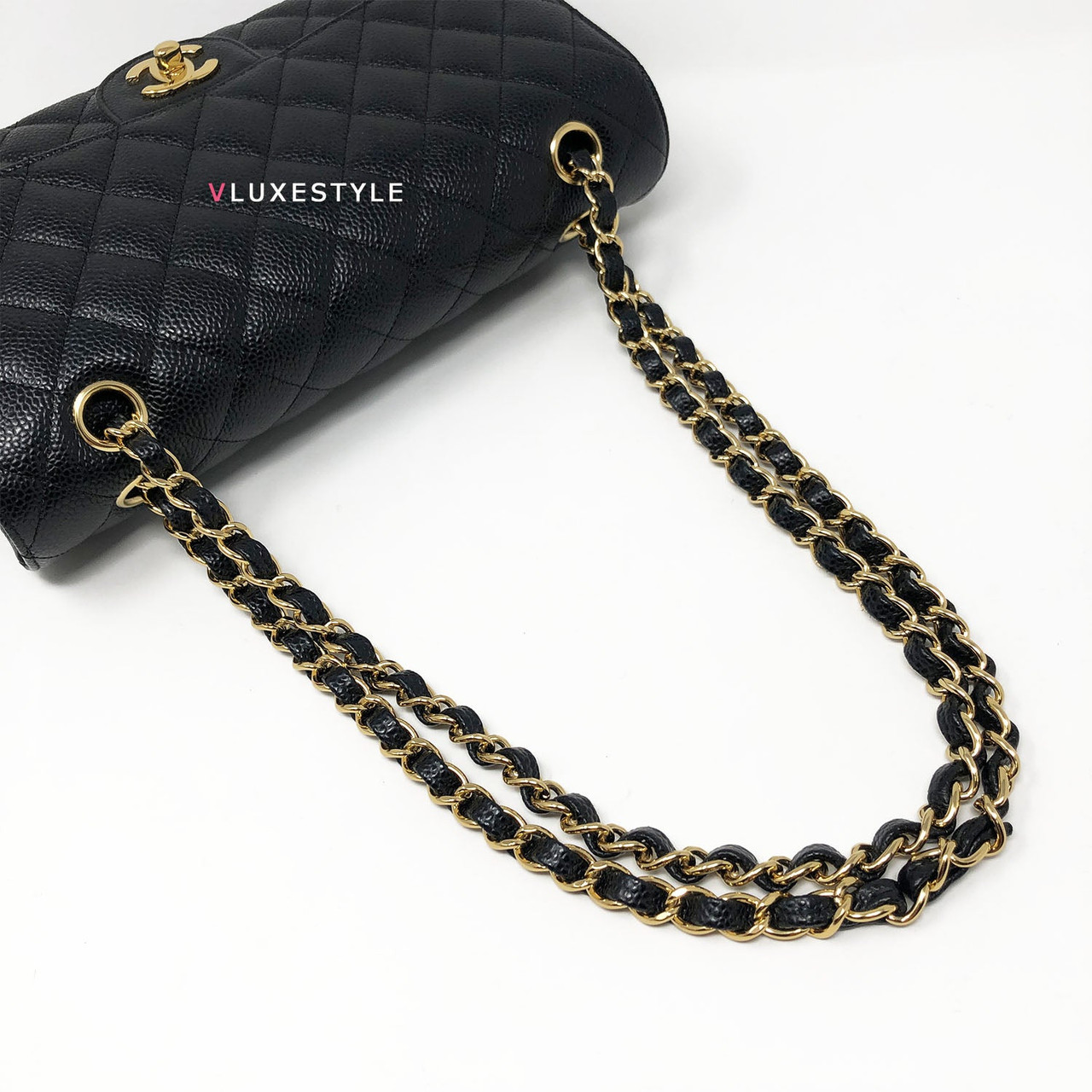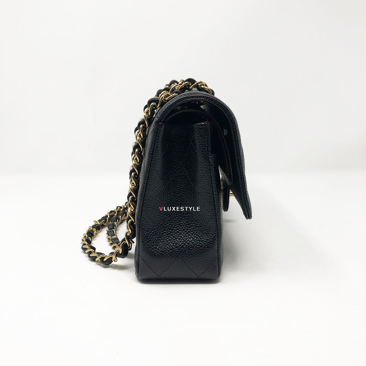 Authentic Chanel Classic Medium Double Flap Caviar with gold hardware. This timeless and stylish shoulder bag is crafted of luxurious and durable quilted caviar leather in shiny jet black and gold hardware. The bag can be worn long and short over-the-shoulder. It's the most classic and timeless piece of Chanel. Classy and elegant! it’s the perfect bag for every occasion.