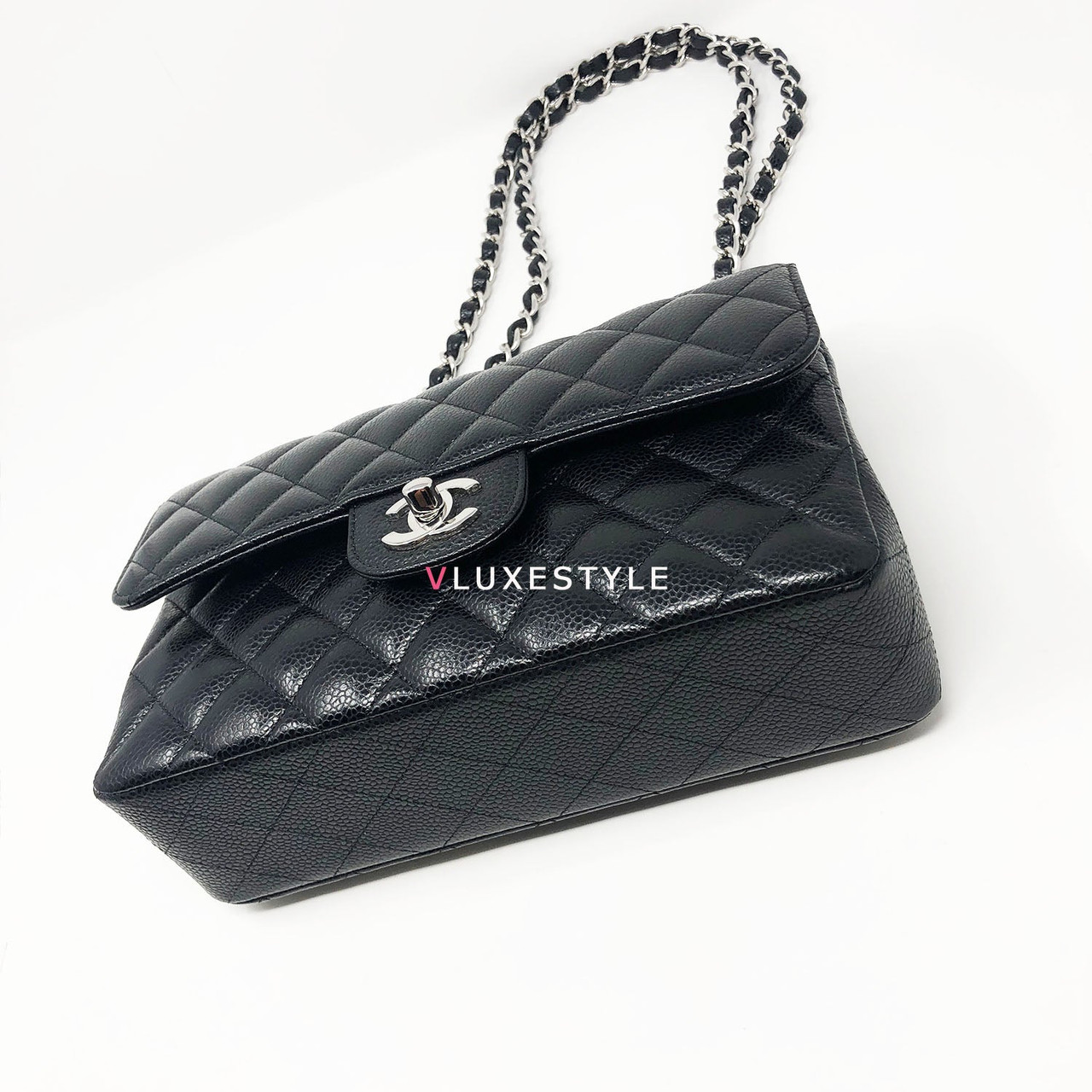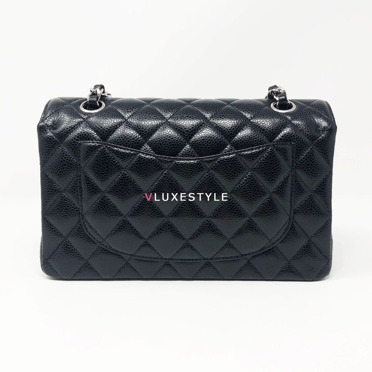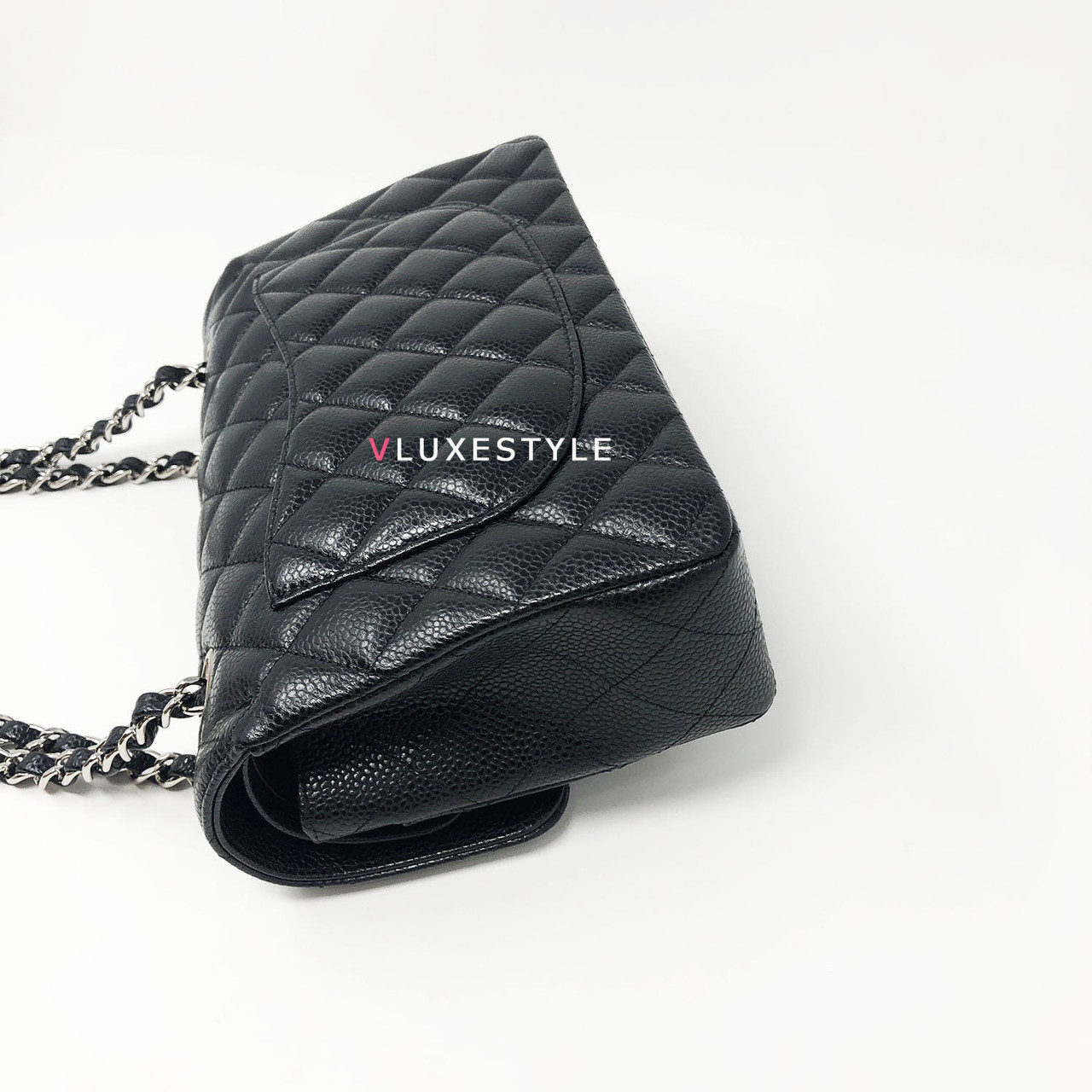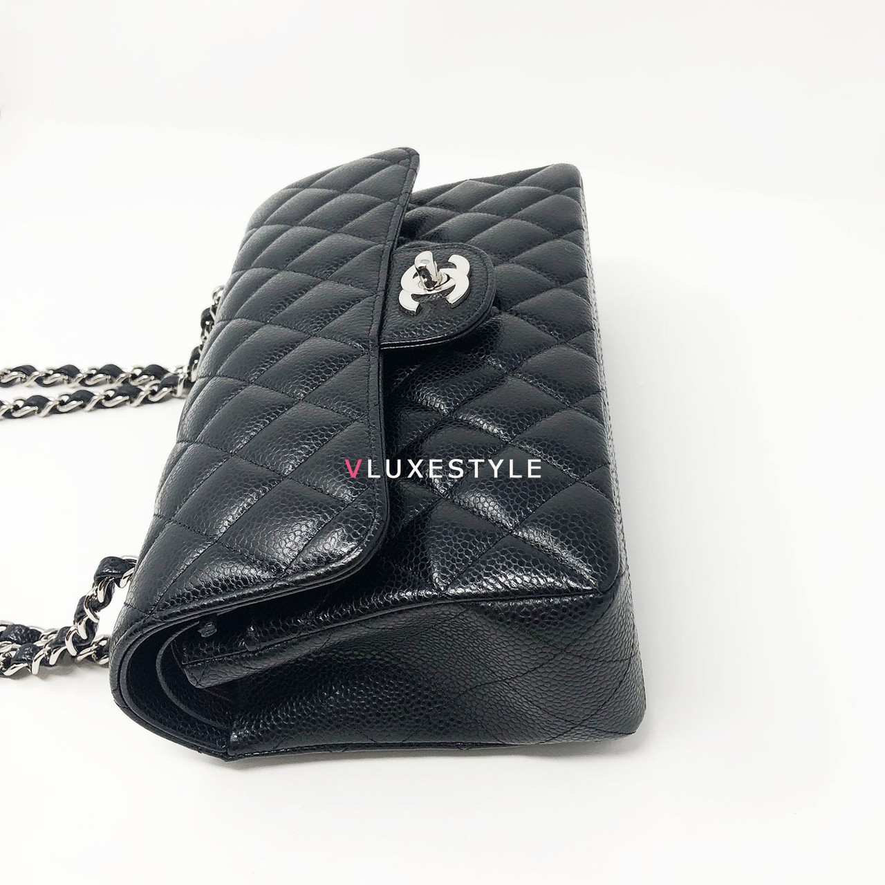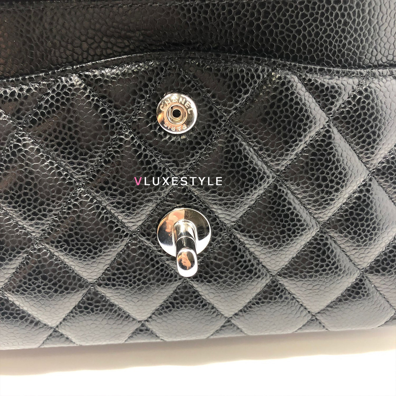 Rare and Gorgeous! Authentic Chanel Classic Small Double Flap Black Caviar with silver hardware with lengthened straps. This timeless and stylish shoulder bag is crafted of luxurious and durable quilted caviar leather in shiny jet black, quilting is puffy with silver hardware.