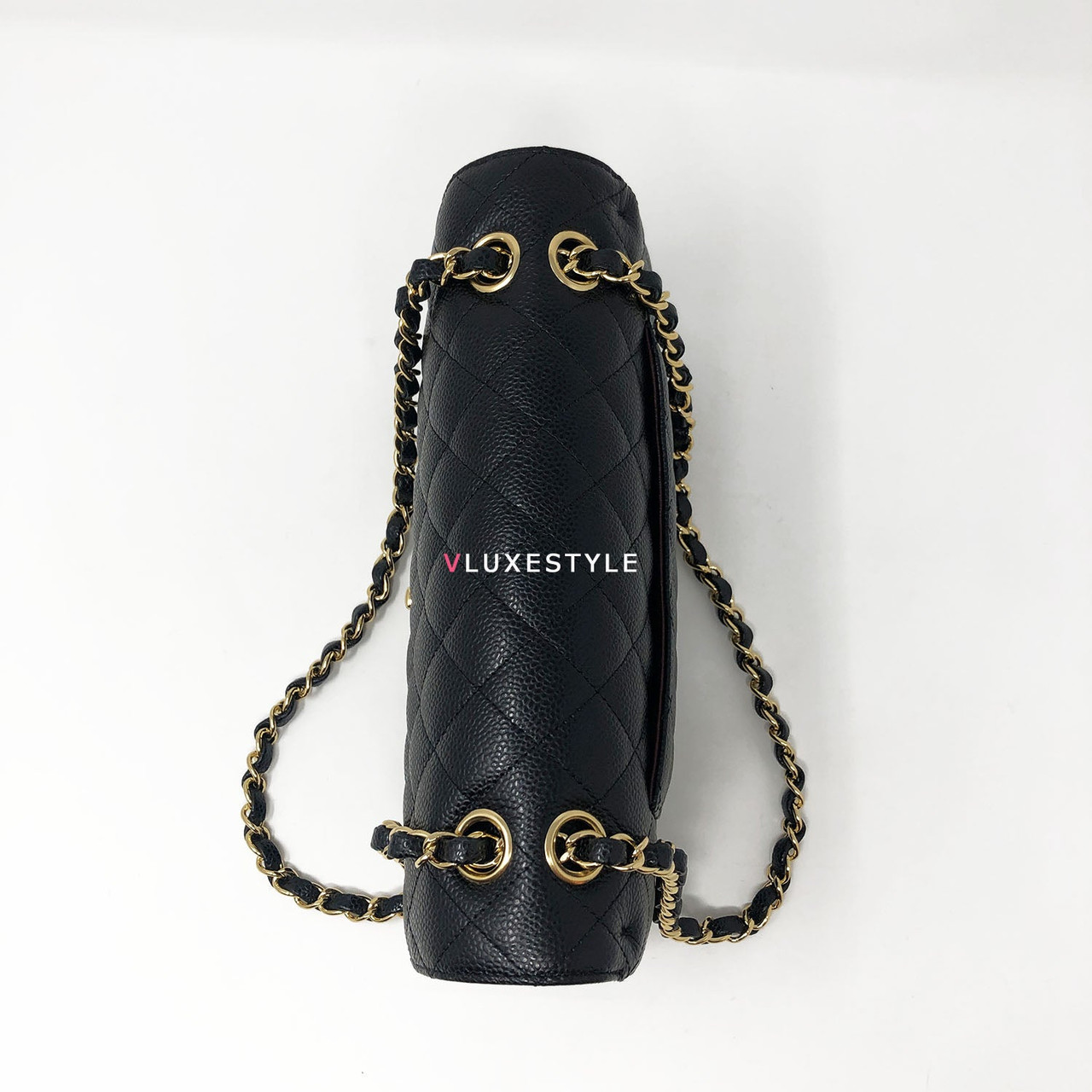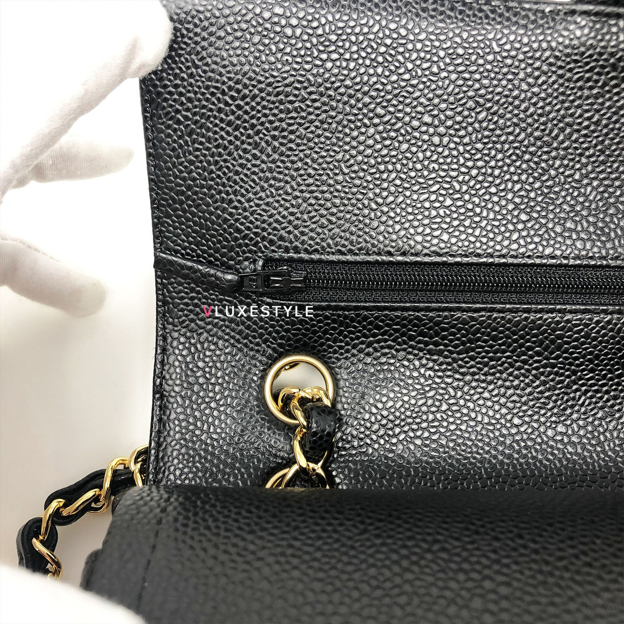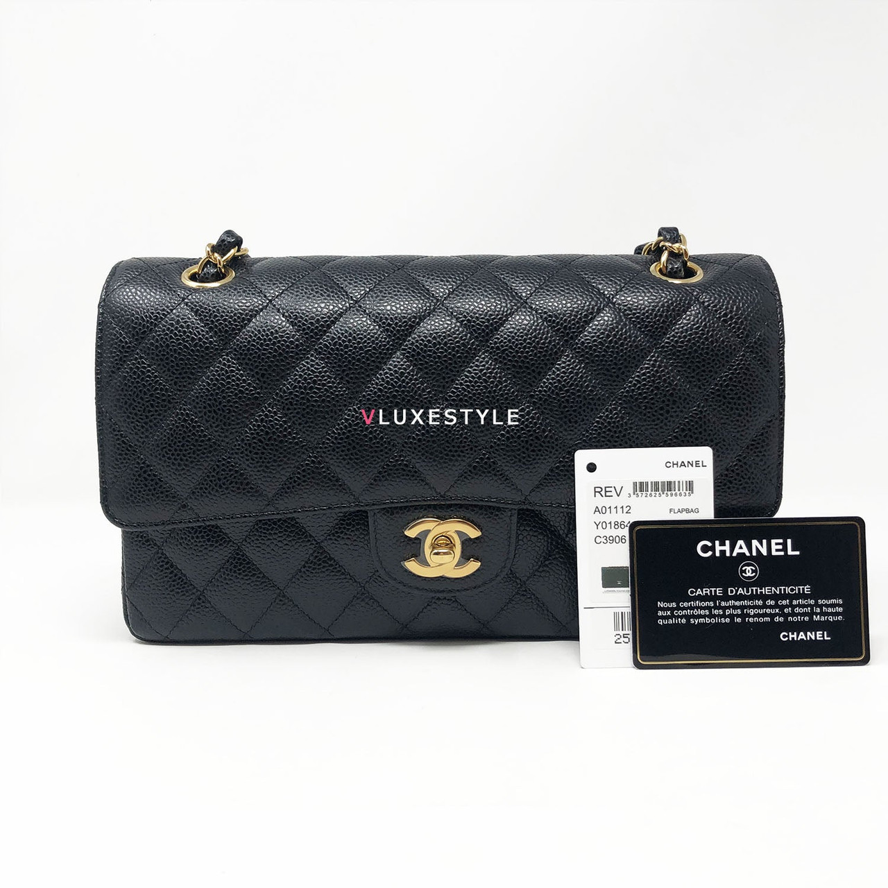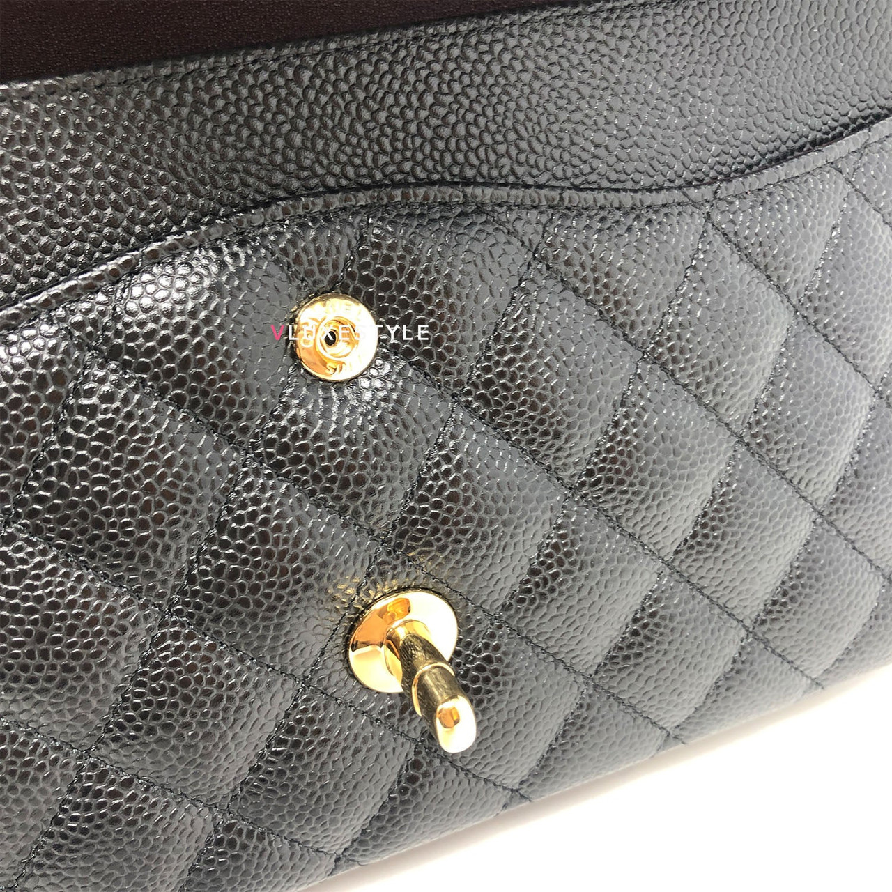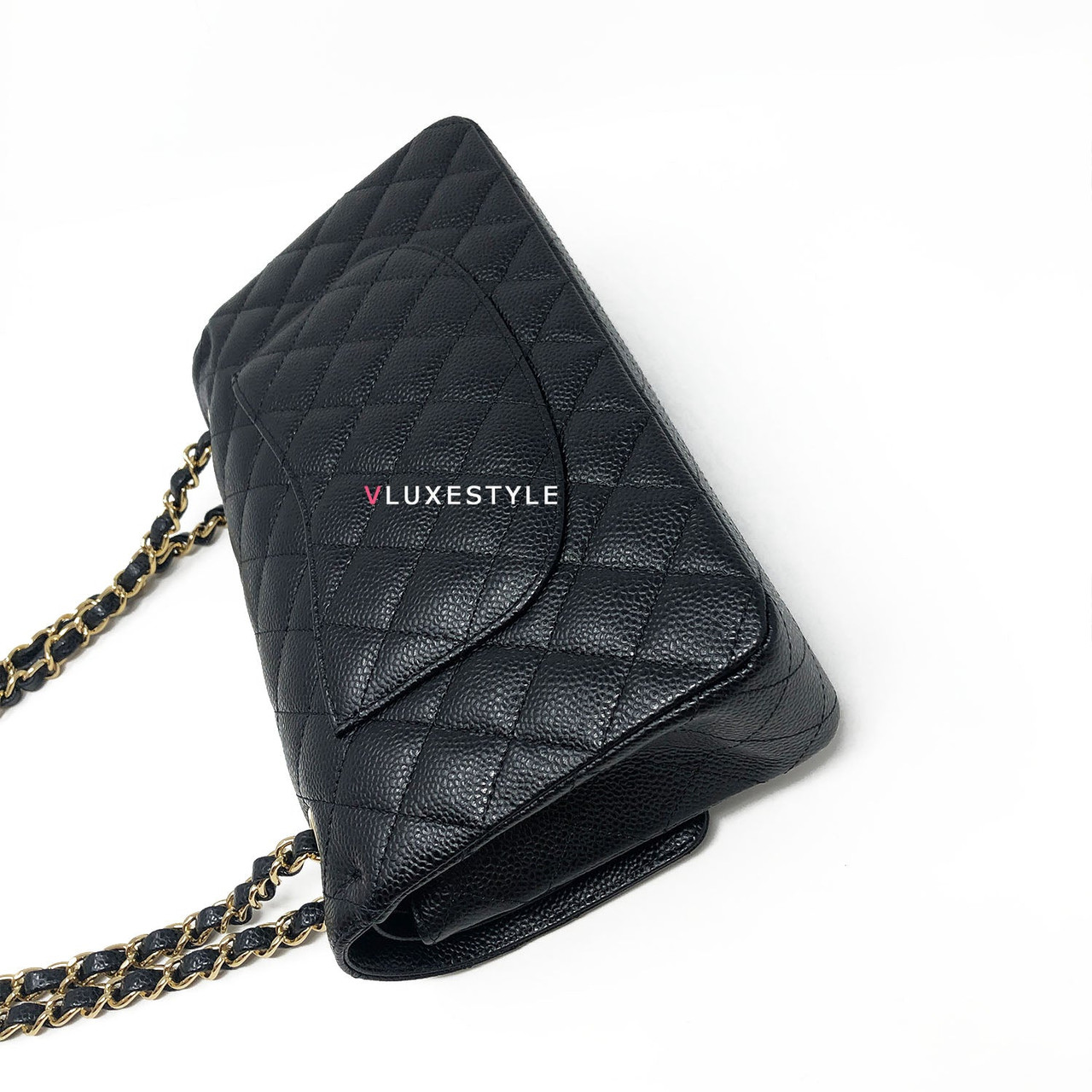 Authentic Chanel Classic Black Quilted Caviar Medium Double Flap with gold hardware. This timeless and stylish shoulder bag is crafted of luxurious and durable quilted caviar leather in shiny jet black and gold hardware. The bag can be worn long and short over-the-shoulder. It's the most classic and timeless piece of Chanel. Classy and elegant! it’s the perfect bag for every occasion.