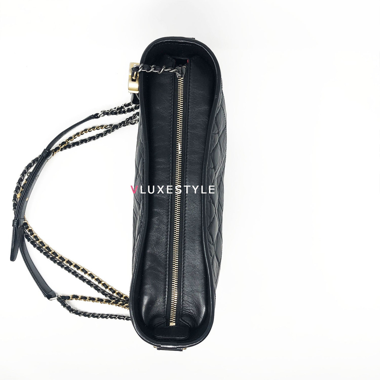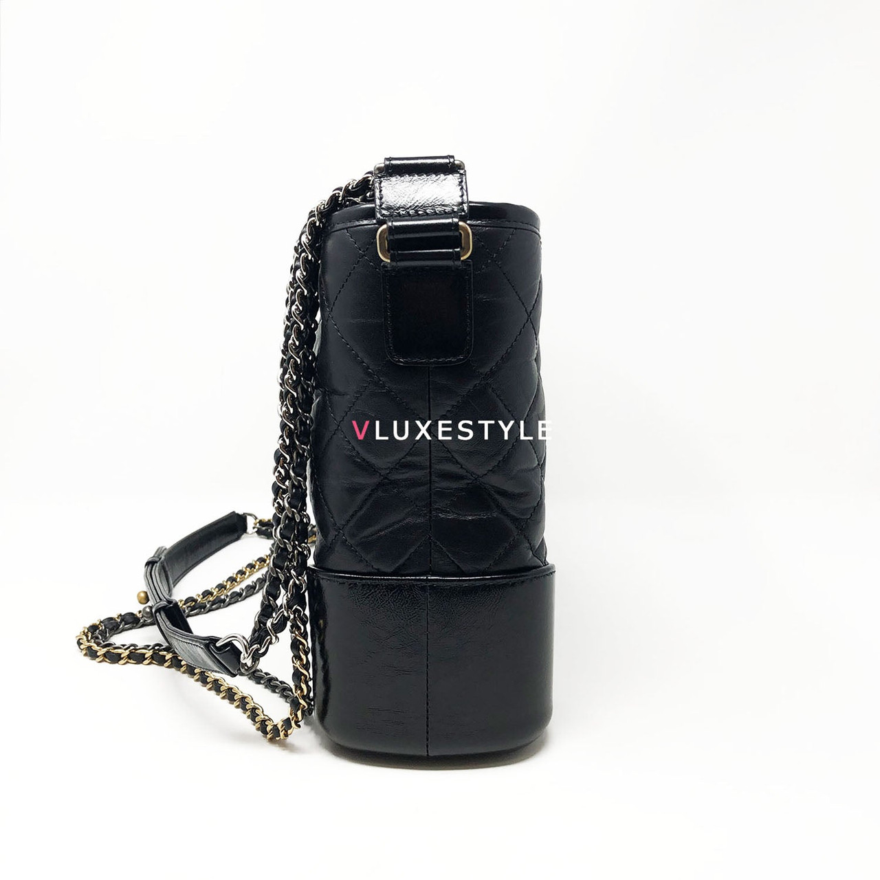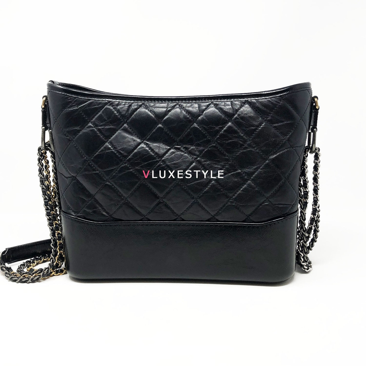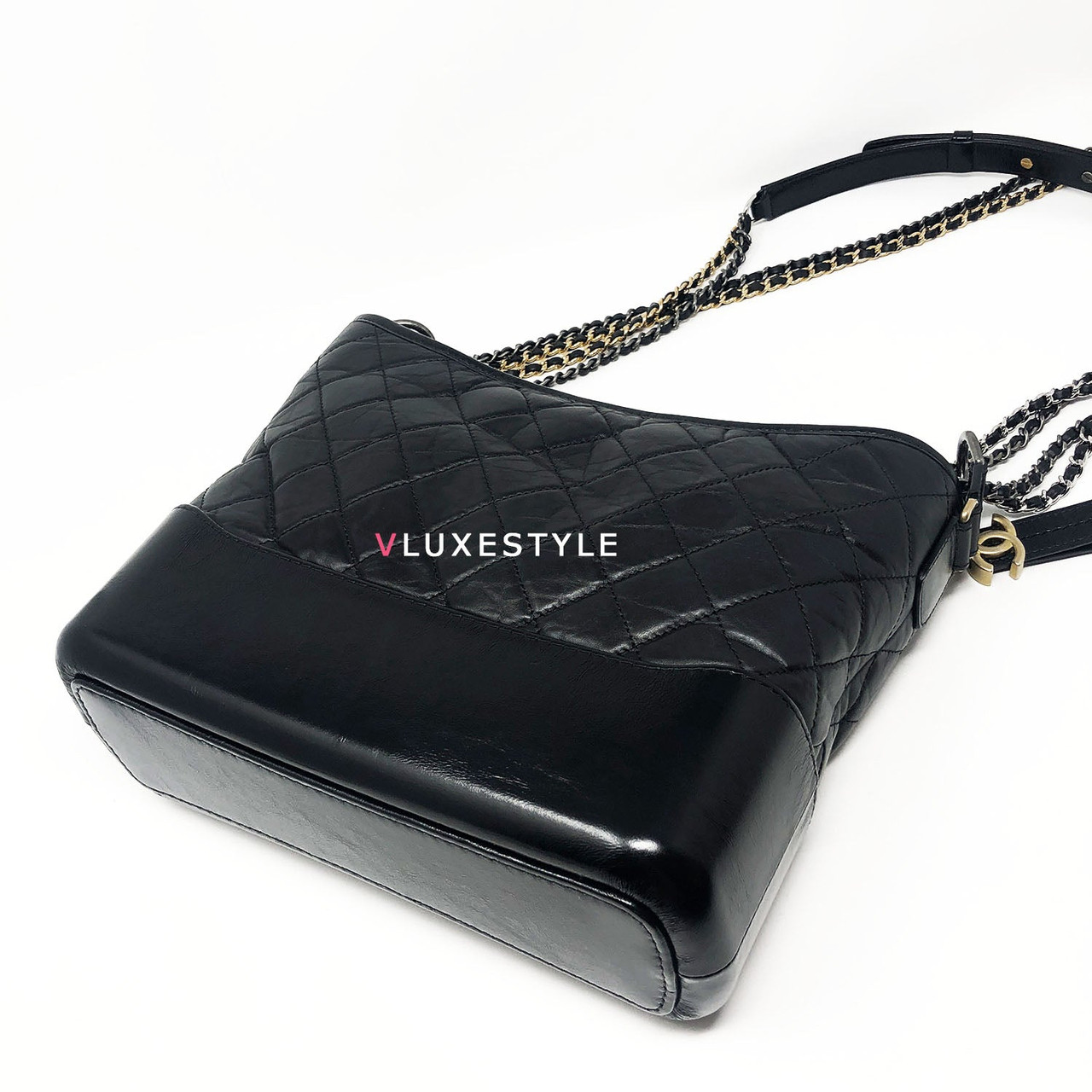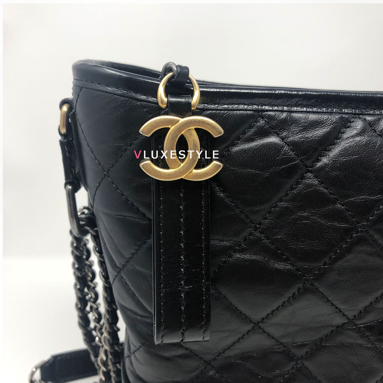 The gorgeous Authentic CHANEL 18P Gabrielle Medium Hobo Aged Quilted Calfskin with mixed hardware. This stylish hobo bag crafted of luxurious and durable quilted aged black calfskin body and smooth calf base and mixed hardware of silver, gold, and ruthenium hardware. This timeless, functional, spacious, and super-versatile bag can be worn in multiple ways, perfect to fit all your everyday essentials.