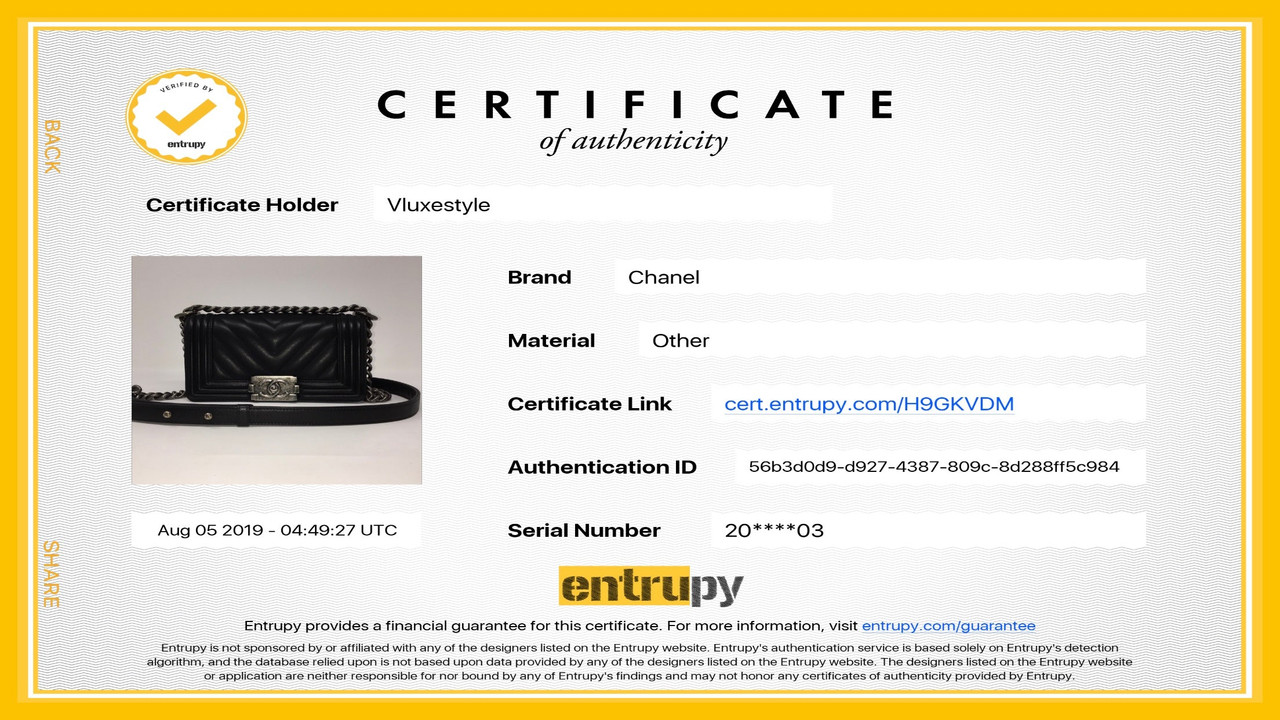 Comes with: Complete set, tags, authenticity card, dust bag, care booklet, ribbons, Chanel box with matching serial code and additional third-party Entrupy Authenticity Certificate.