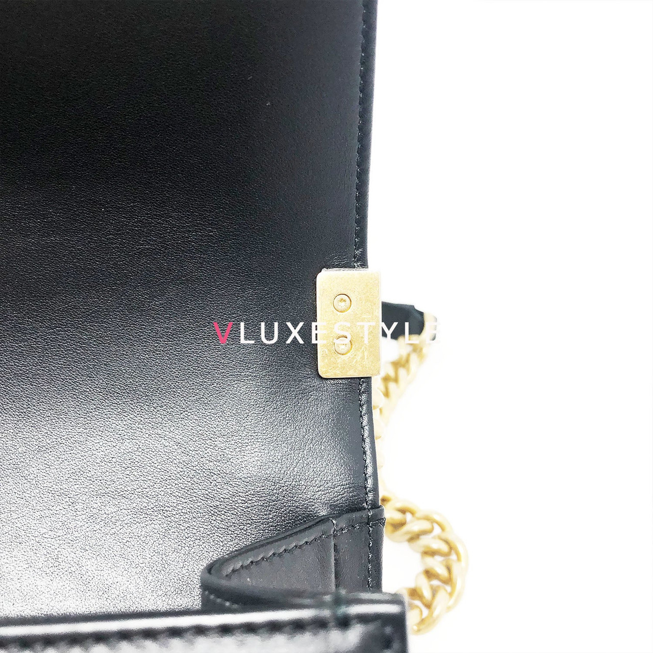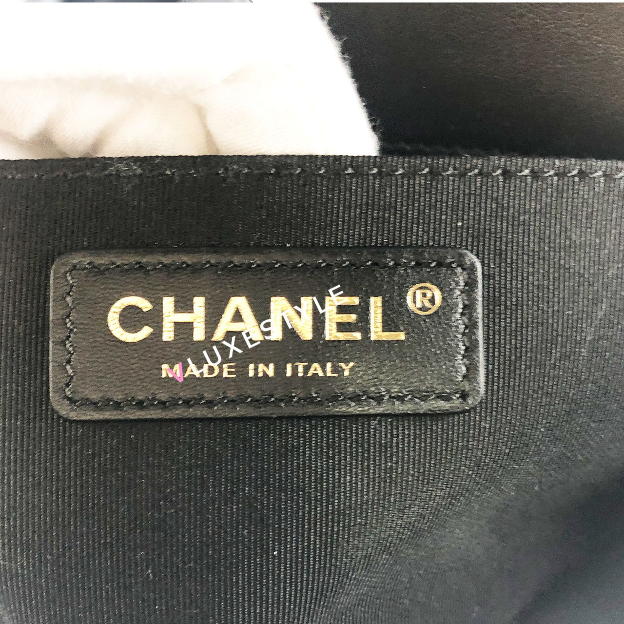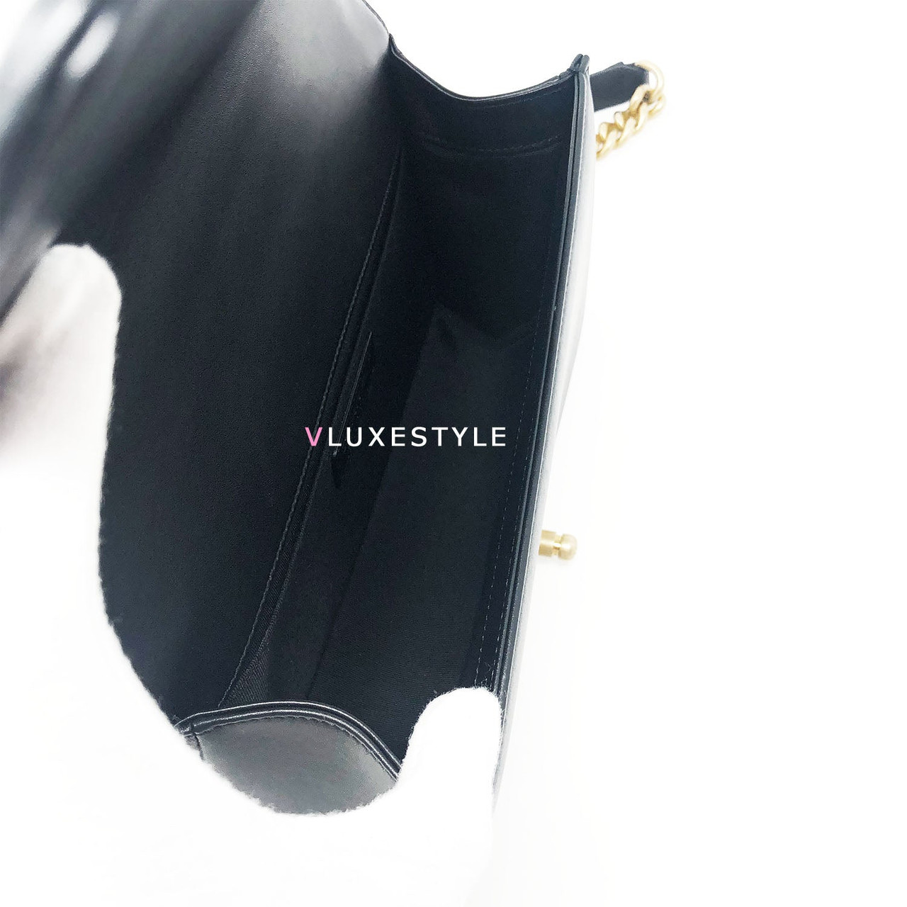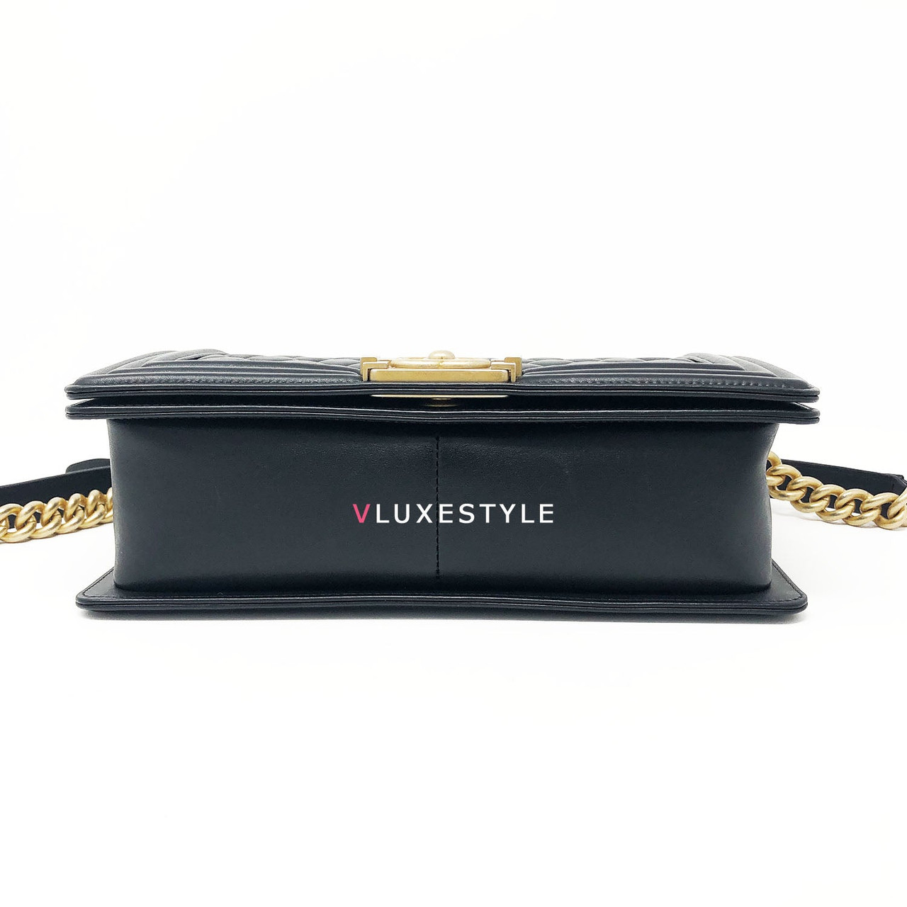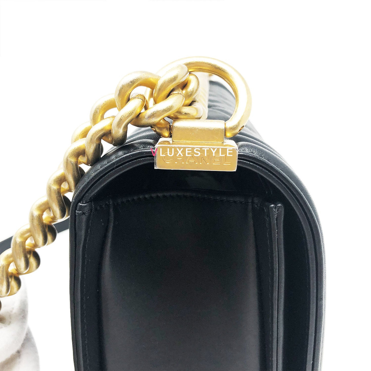 Authentic Chanel Le Boy Old Medium Black Quilted Calfskin with brushed gold hardware. This stylish shoulder bag is crafted of luxurious and durable quilted calfskin leather in black and brushed gold hardware. It's functional and versatile and features enough interior space to fit in all your essentials. The bag can be worn long and short over-the-shoulder bag and crossbody. It's the perfect bag for any occasion, wear it as a casual or formal bag.