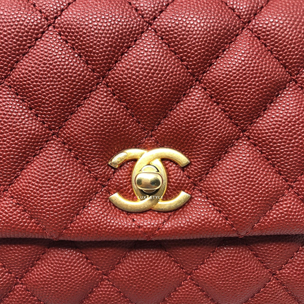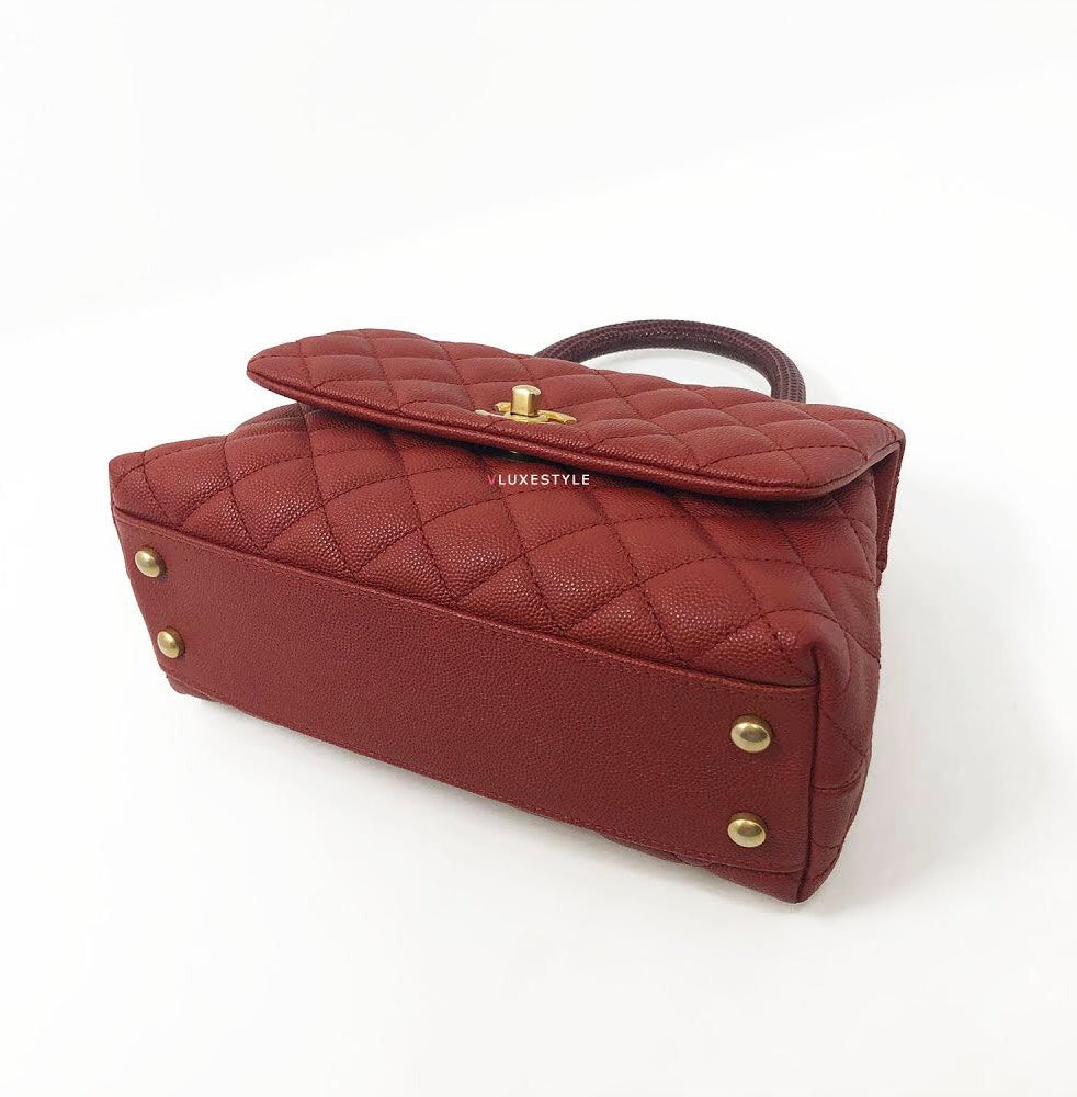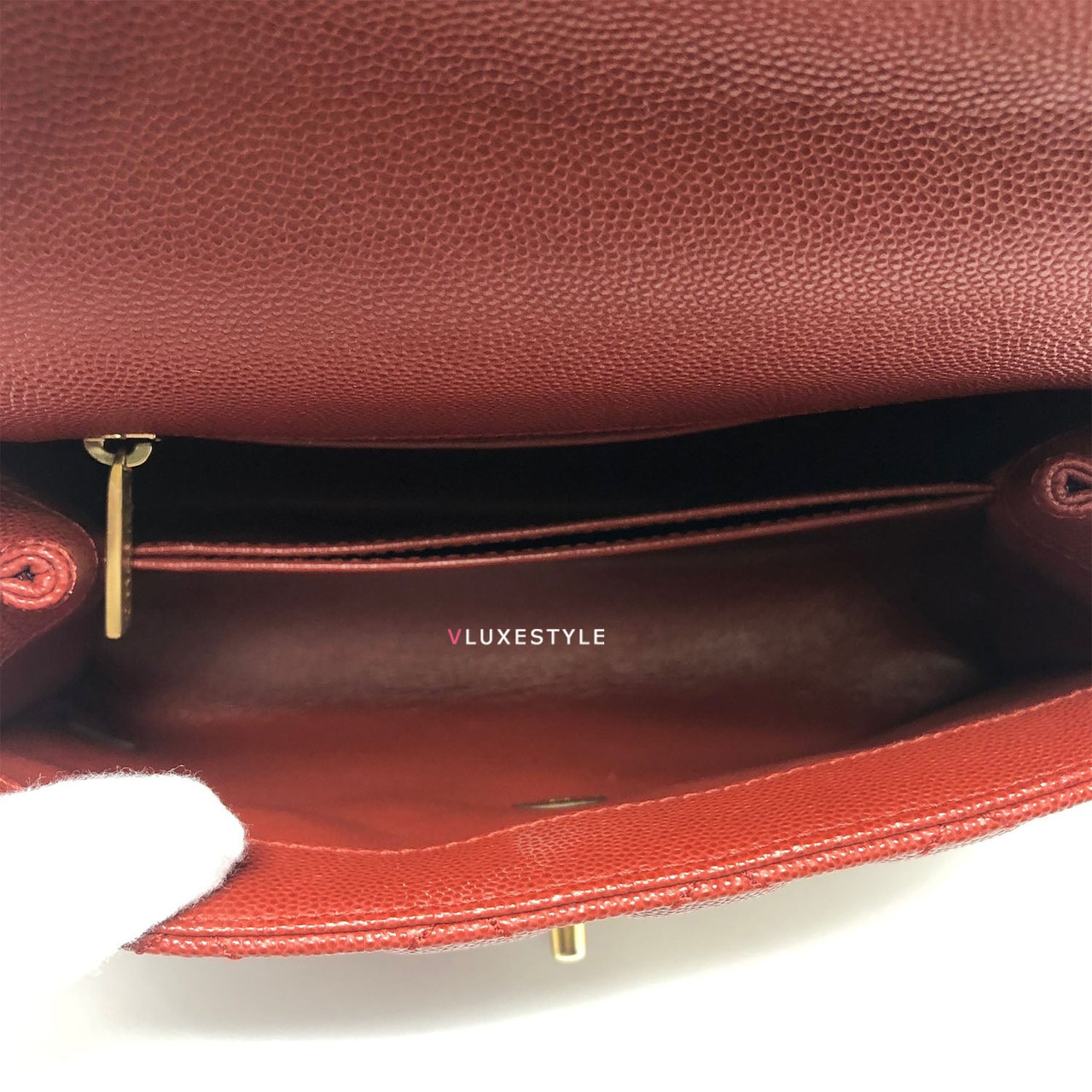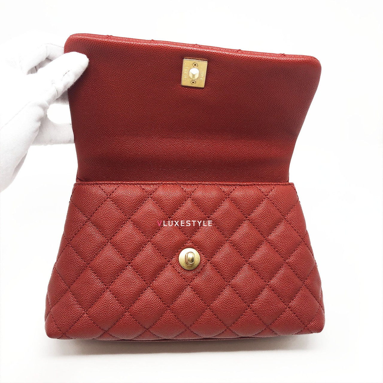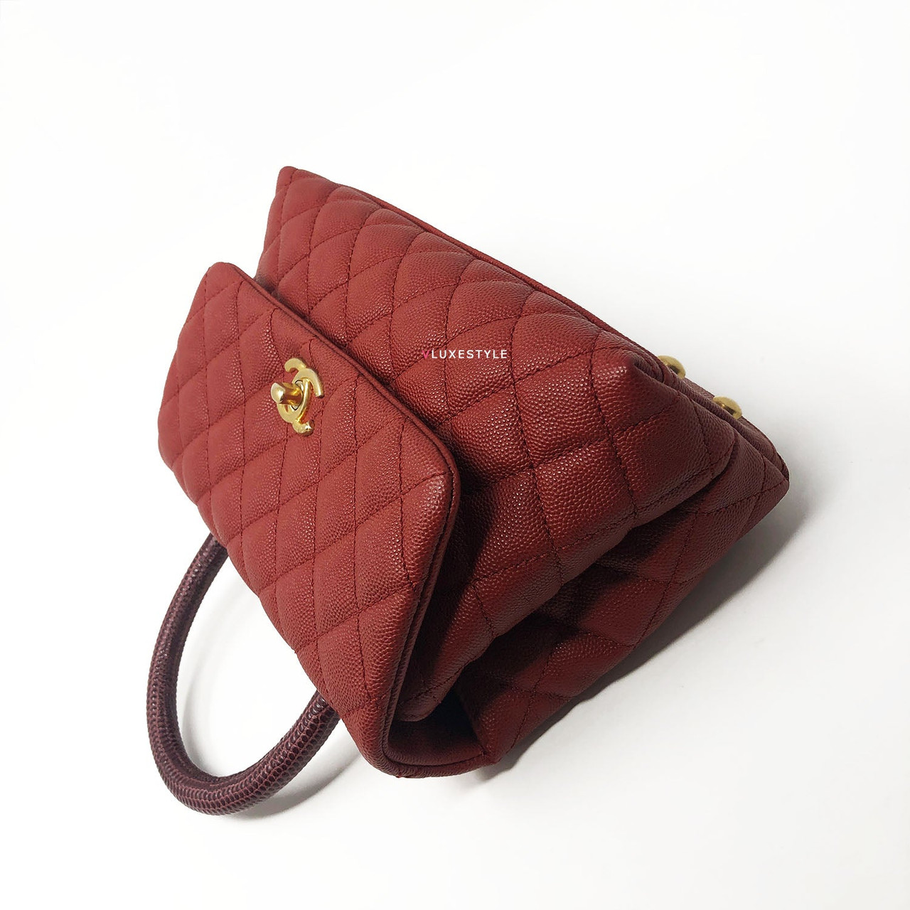 Very rare and hard to find! Authentic Chanel Mini Coco Red Quilted Caviar with Lizard handle and aged gold hardware. Absolutely stunning even more so in person. This stylish shoulder bag is crafted of luxurious and durable quilted caviar leather in red. The bag features a brown lizard handle and aged gold chain removable shoulder straps. Wear this bag handheld or over-the-shoulder. Last 2018 Chanel discontinued making exotics. If you've missed one, this is your chance to get this very rare combination.