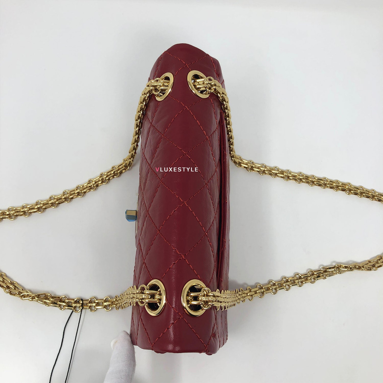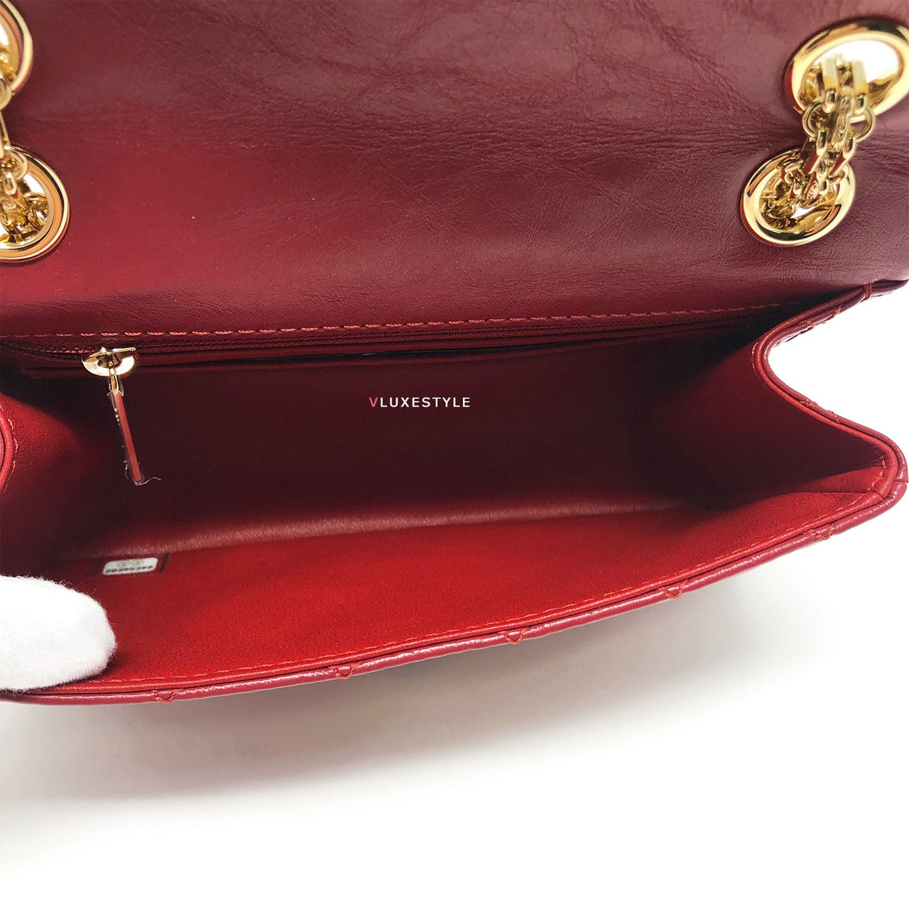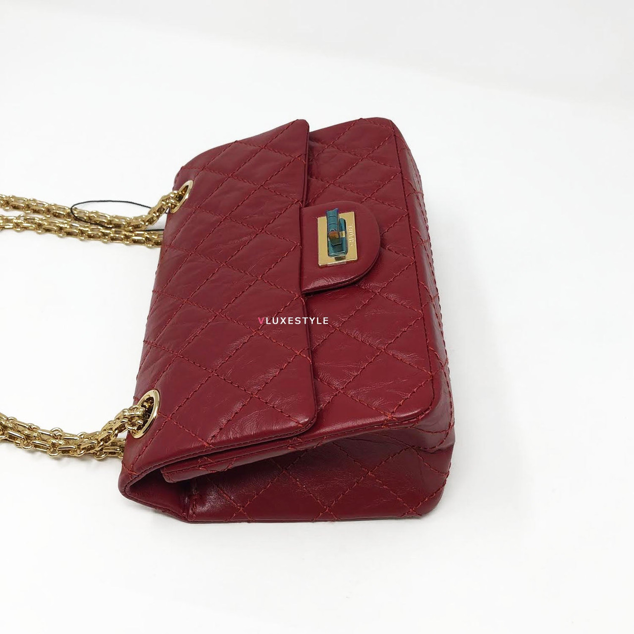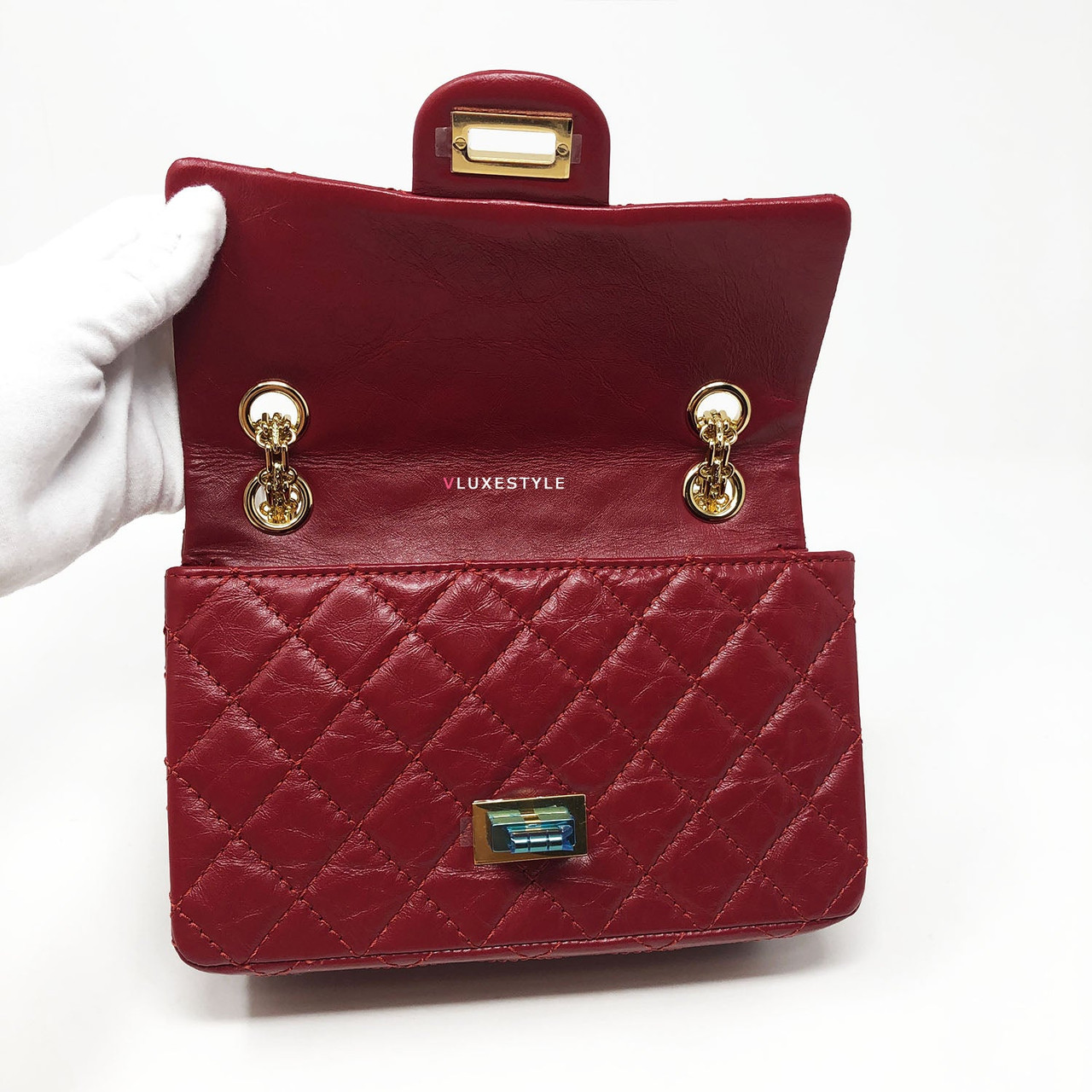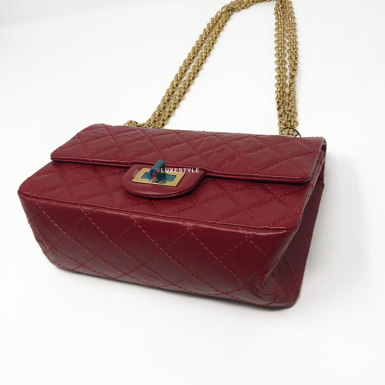 This stylish shoulder bag is crafted of luxurious and durable aged calfskin leather in red and shiny gold hardware. The mini size is the same size as the Reissue 224. The bag features a mademoiselle turn lock closure and bijoux aged gold hardware shoulder chains and it comes with 4-grommets, you can change from cross body to double chain shoulder bag or to single chain shoulder bag easily. An elegant, understated, timeless piece perfect for every occasion.
