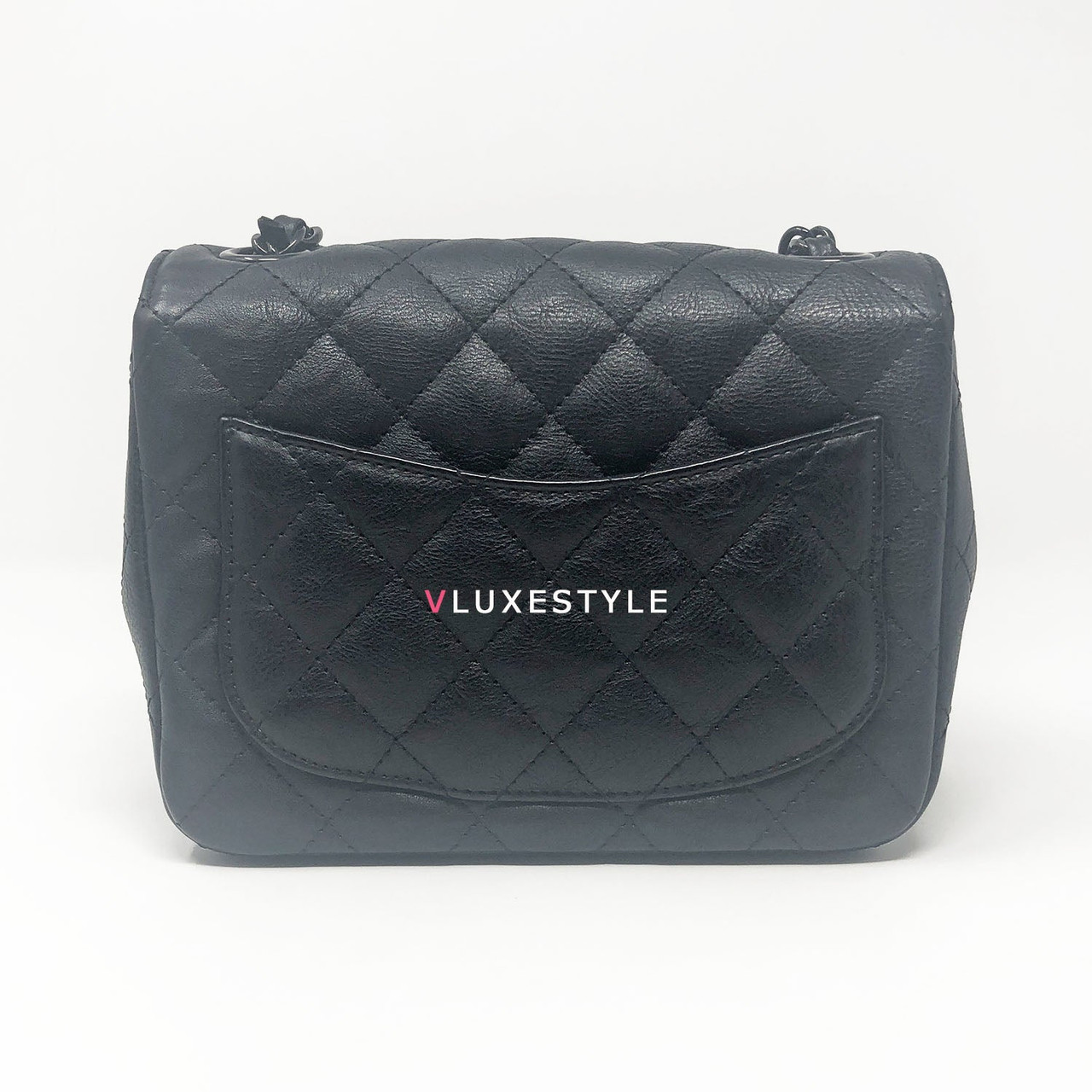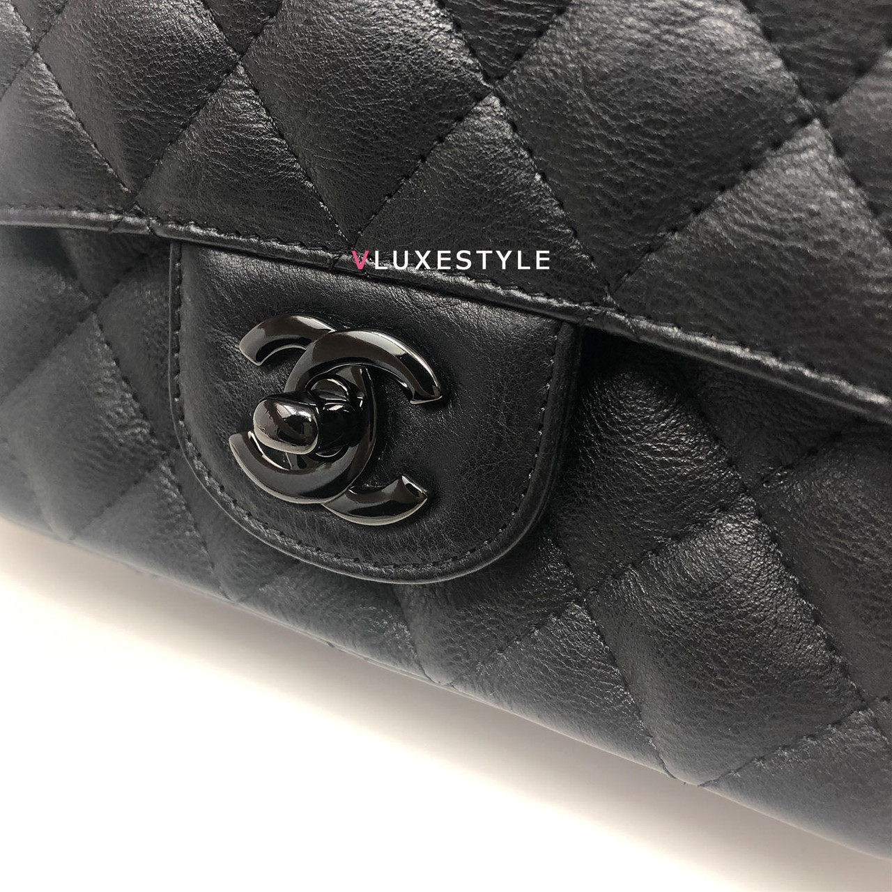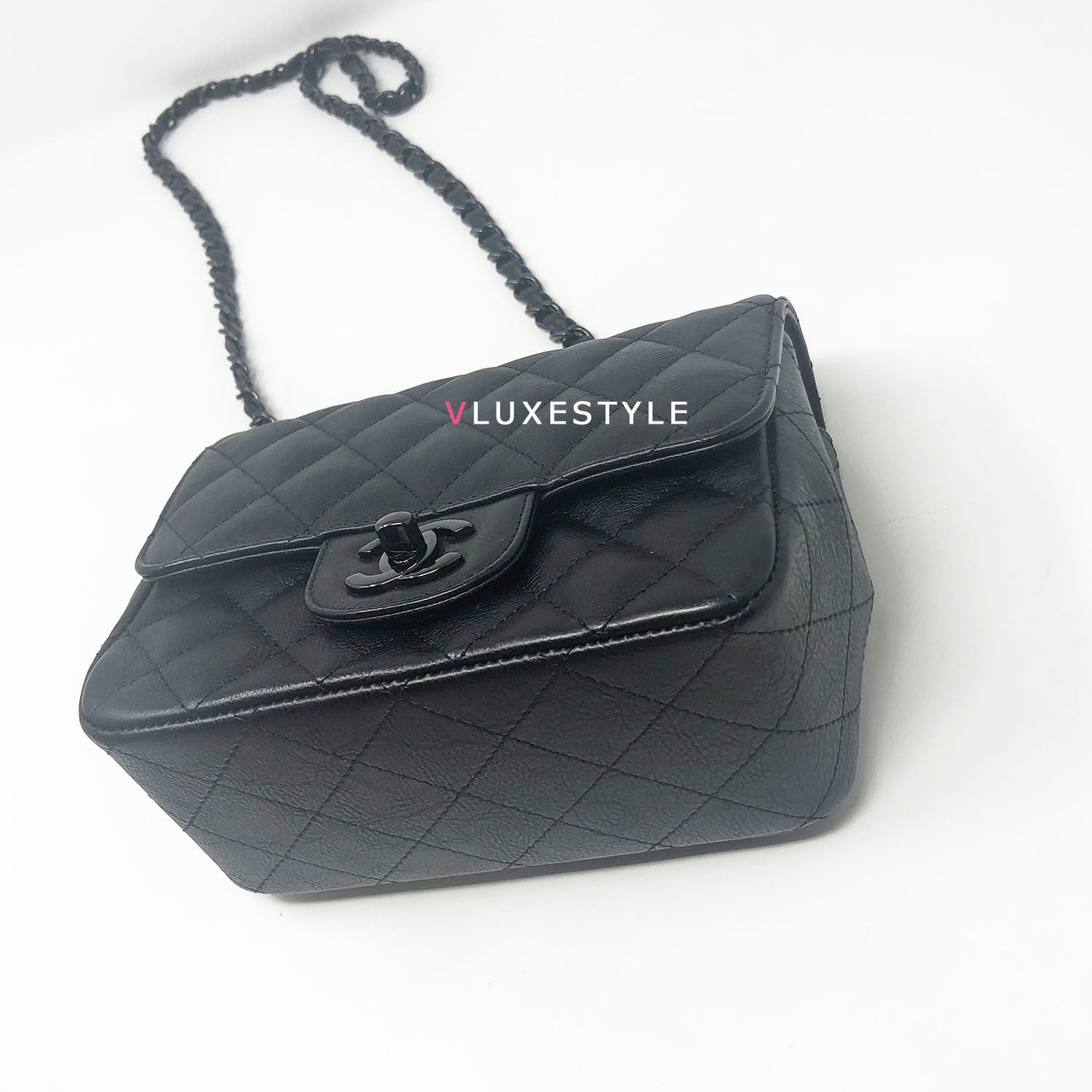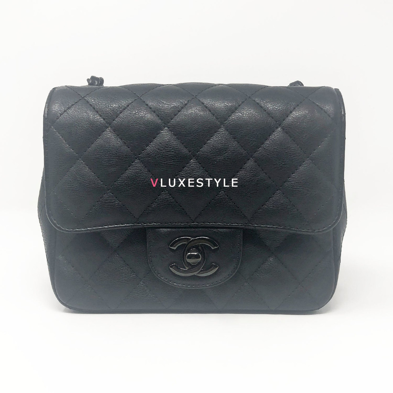 Authentic Chanel 17S So Black Mini Square Crumpled Quilted Calfskin with shiny black hardware. The most coveted and rare combination of leather and hardware and its only limited availability in certain seasons. This chic mini bag is crafted of durable calfskin leather in black with shiny black hardware. The bag can be worn as a cross-body or over-the-shoulder bag.