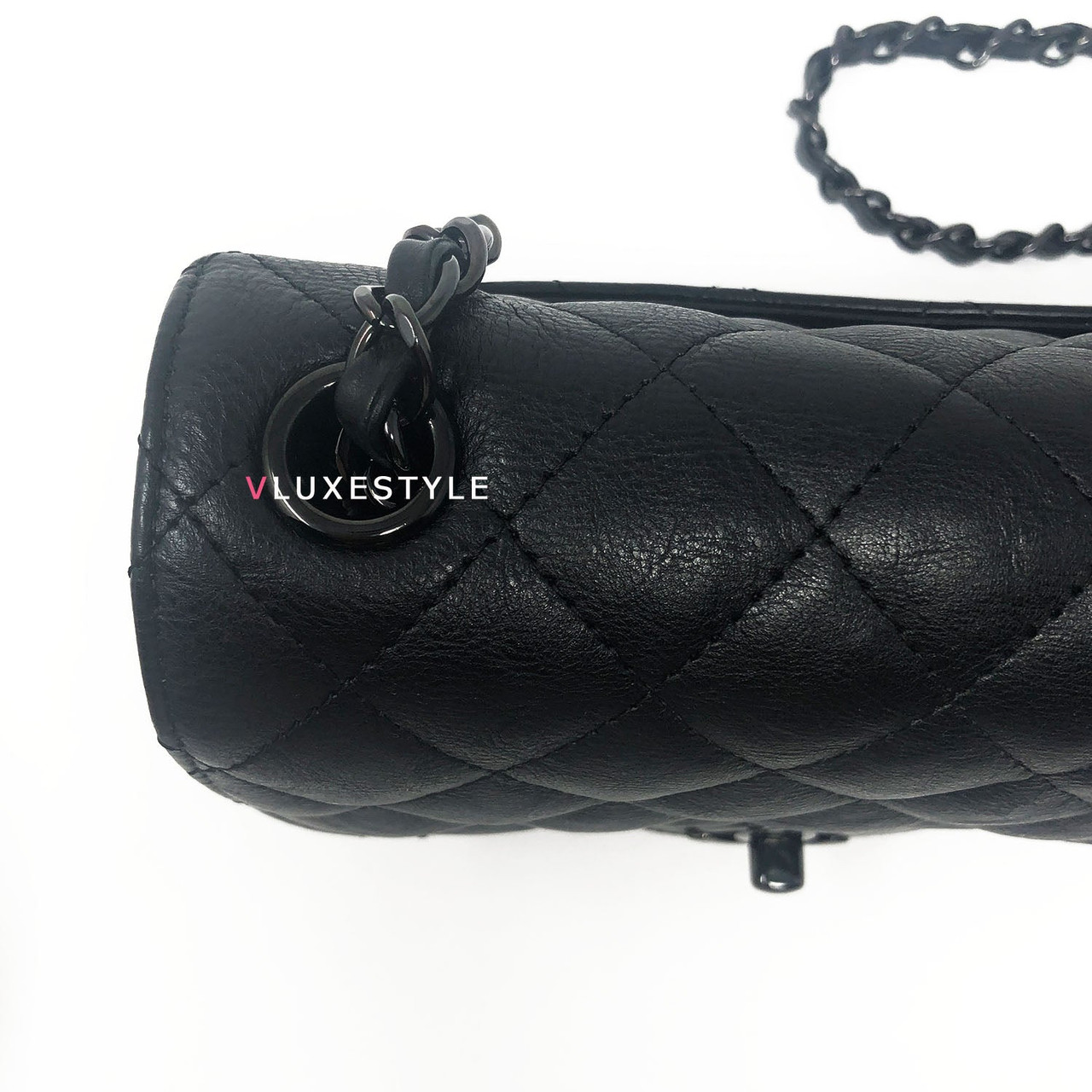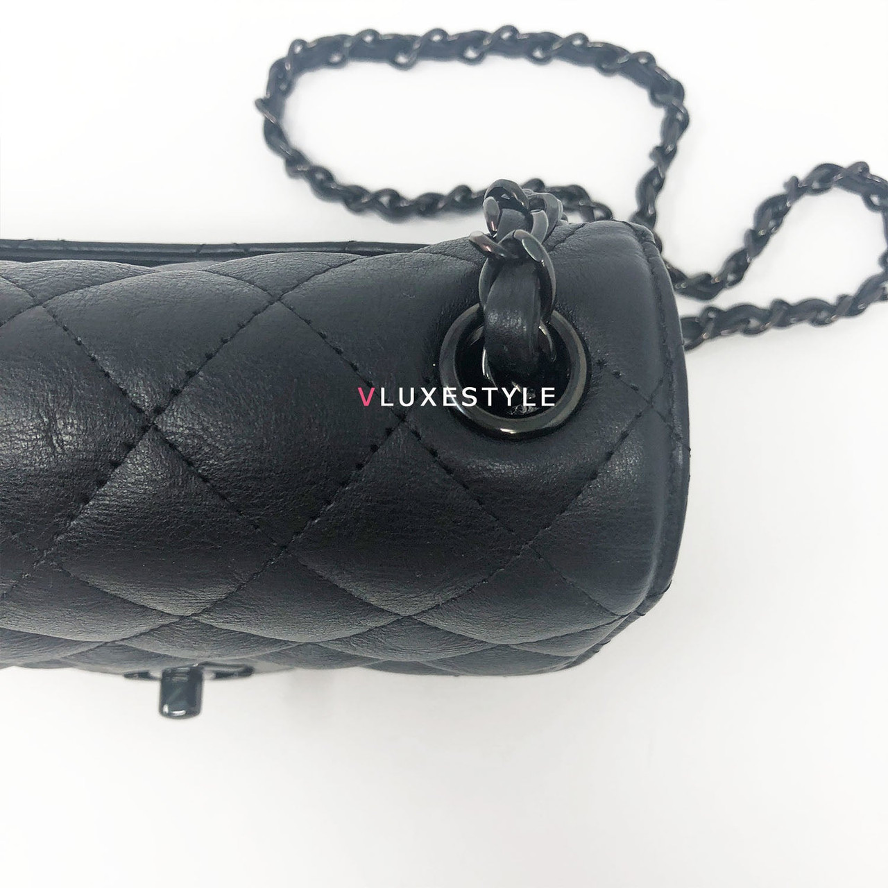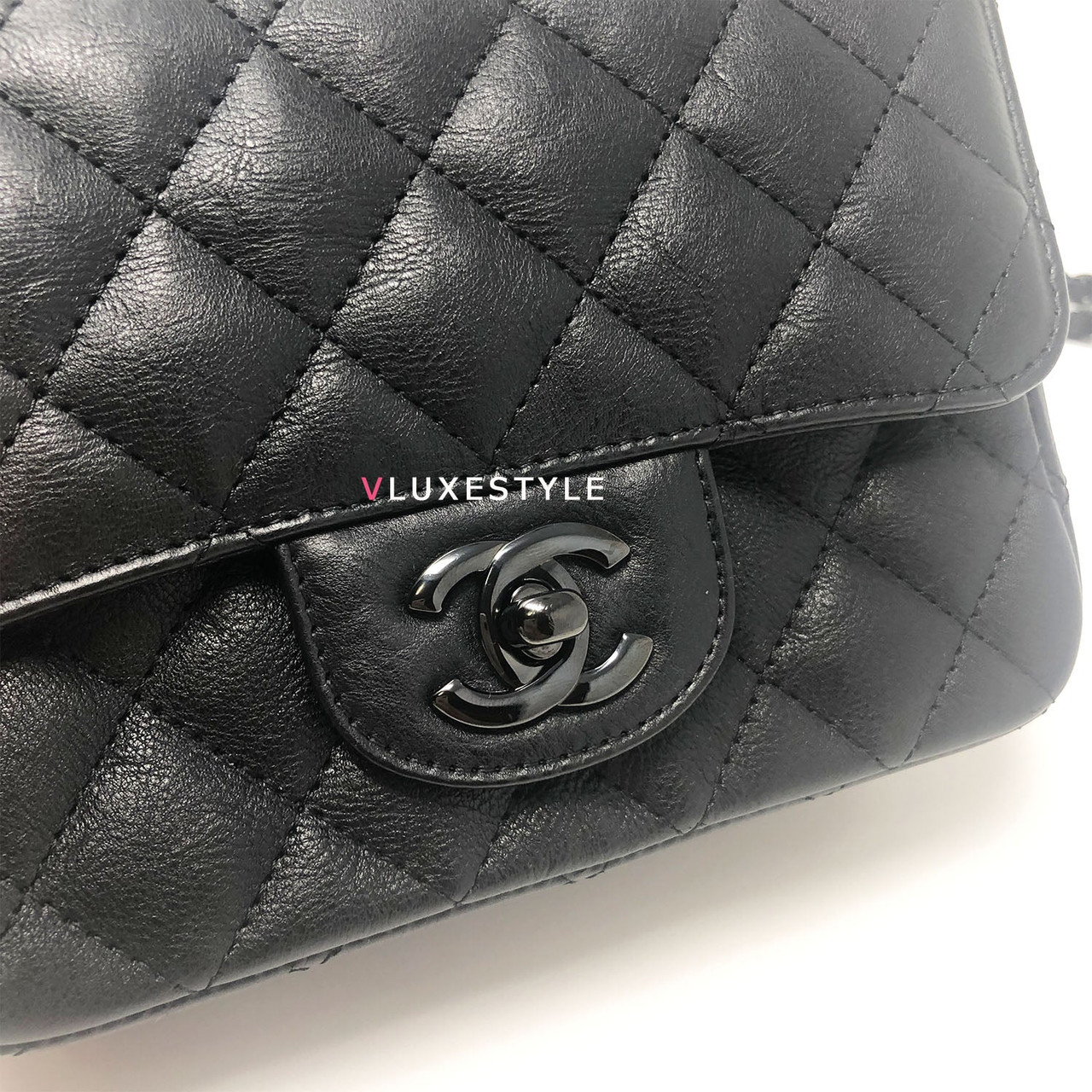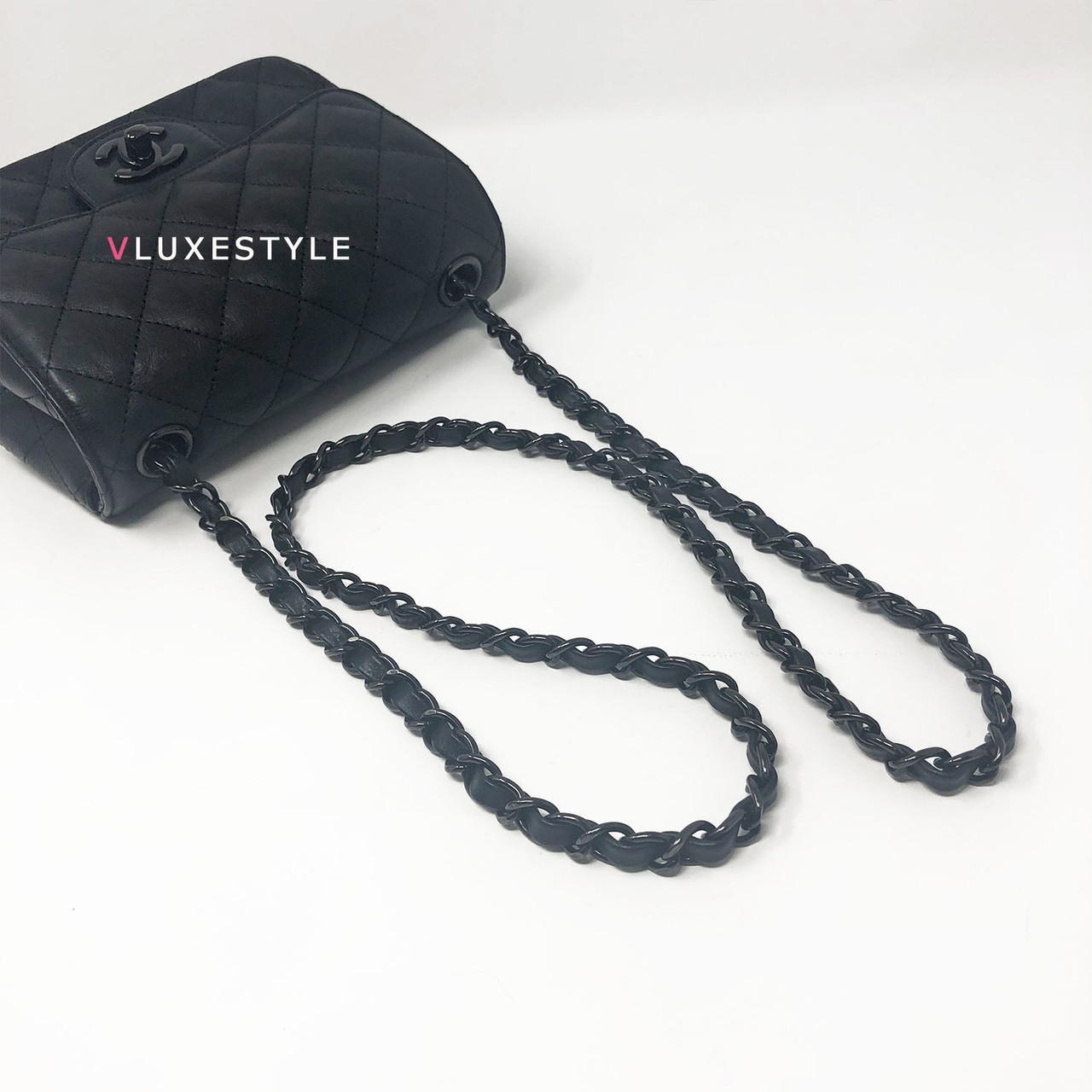Authentic Chanel 17S So Black Mini Square Crumpled Quilted Calfskin with shiny black hardware. The most coveted and rare combination of leather and hardware and its only limited availability in certain seasons. This chic mini bag is crafted of durable calfskin leather in black with shiny black hardware. The bag can be worn as a cross-body or over-the-shoulder bag.