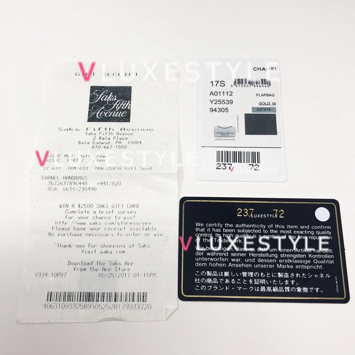 Condition: Excellent to like-new condition, all corners are in perfect condition, the protective sticker is intact on the inside hardware, CC hardware is shiny has no scratches, few faint scratches on the inside flap (unnoticeable). The exterior and interior leather remains pristine all throughout, the bag is clean inside and out.