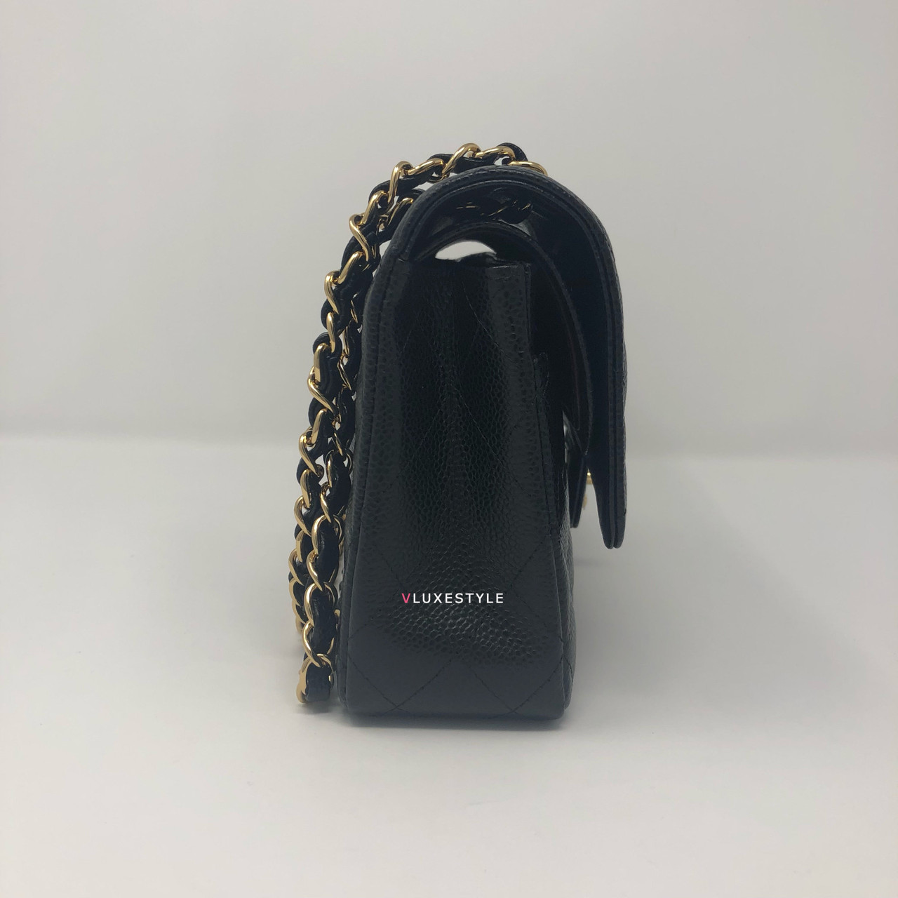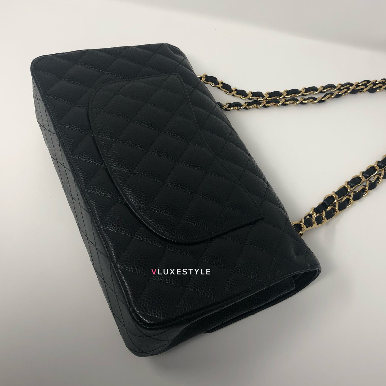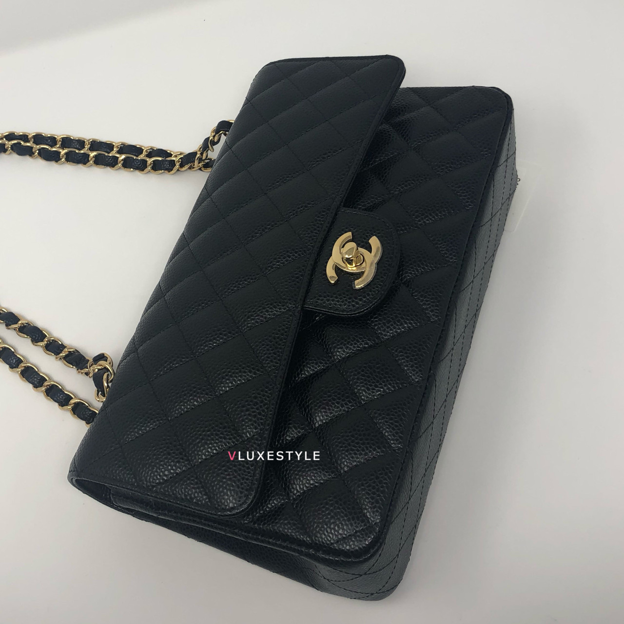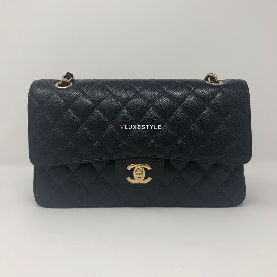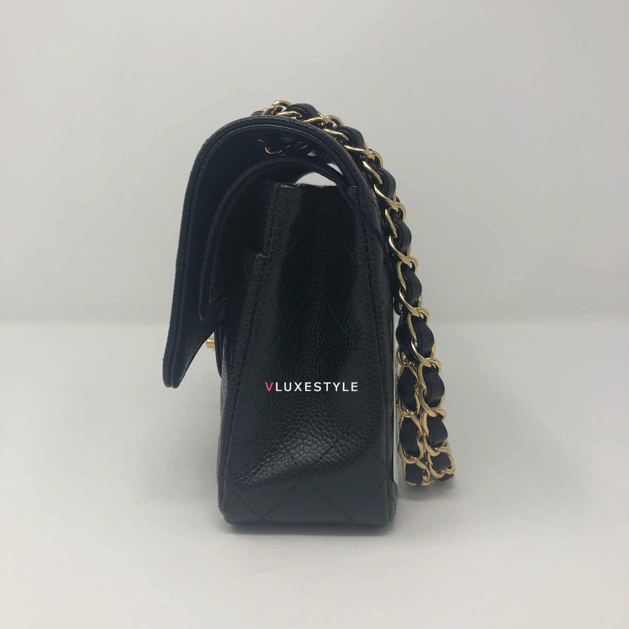 Brand new with tags and receipt! Classic Black Medium Caviar with gold hardware. Made in France/25 series/2018. The bag comes full set, authenticity card, receipt dust bag, box, care booklet, felt, camelia and lace with additional third-party Entrupy Authenticity Certificate.