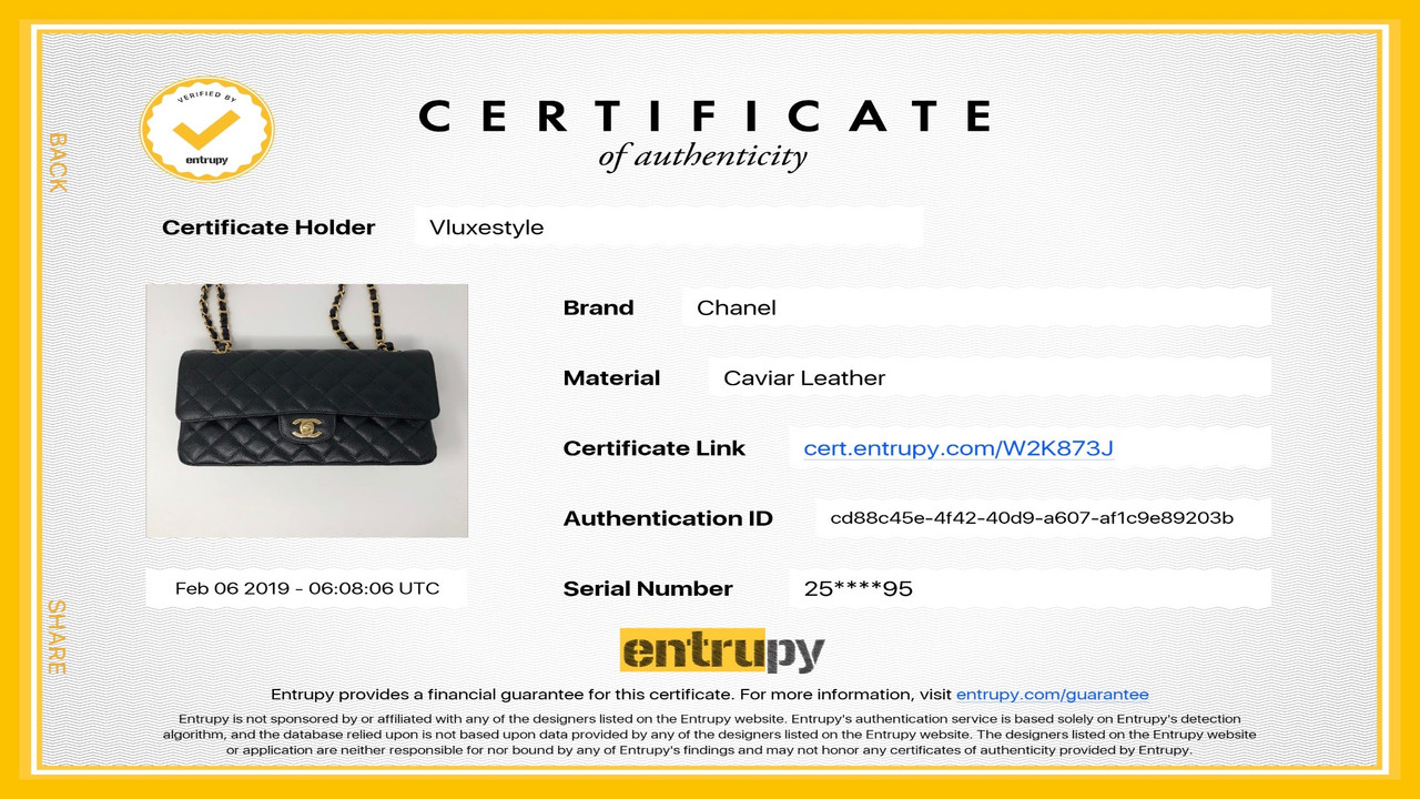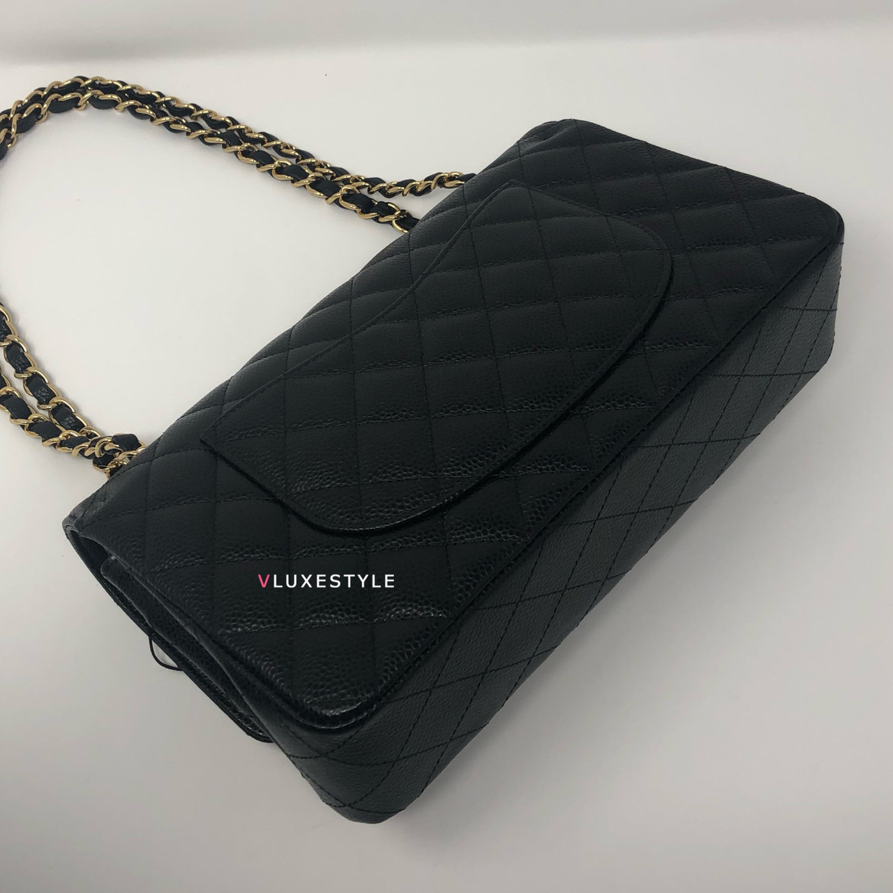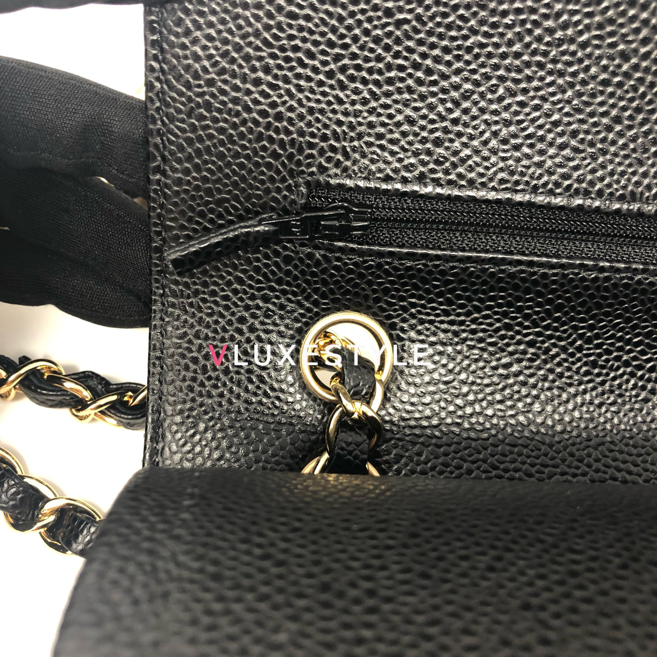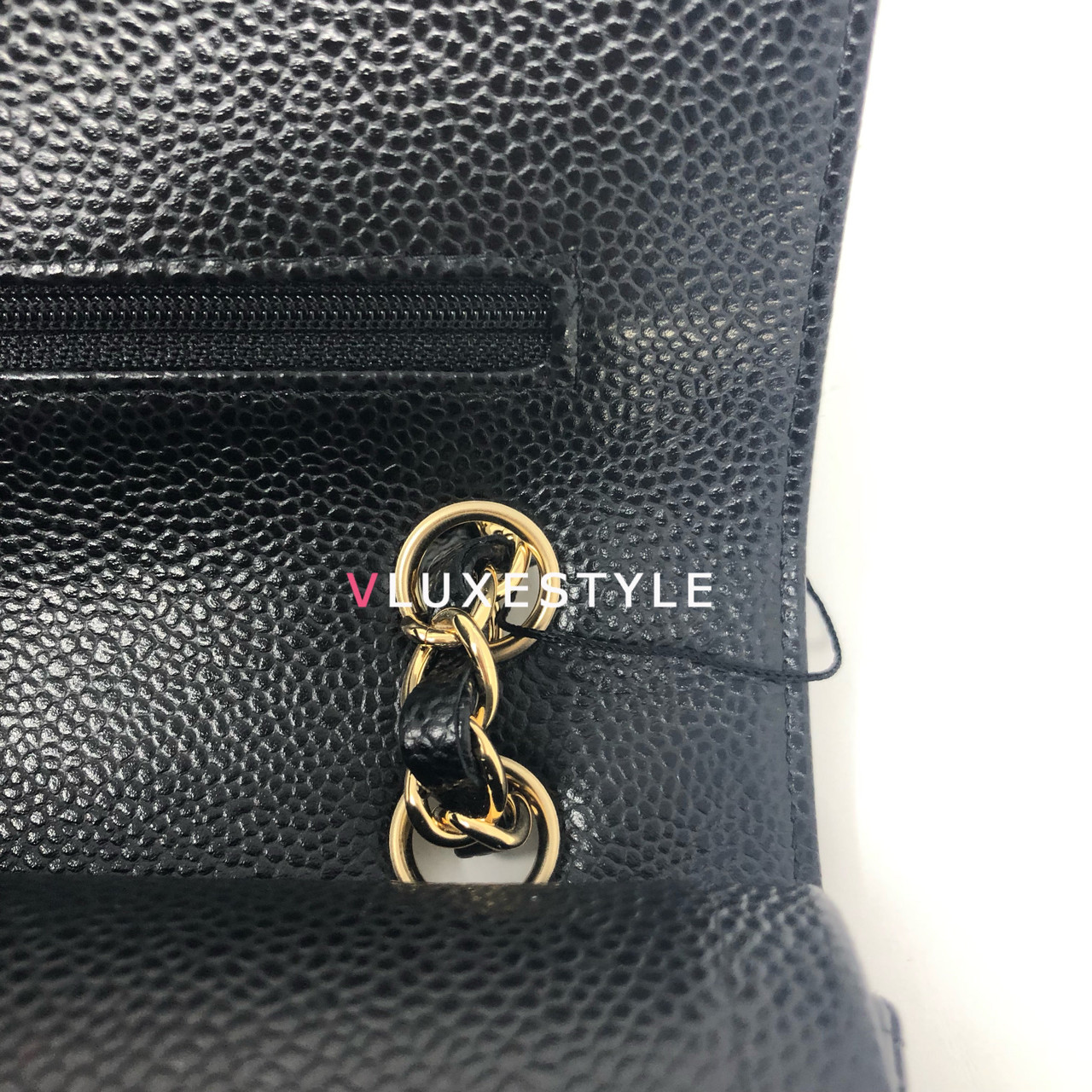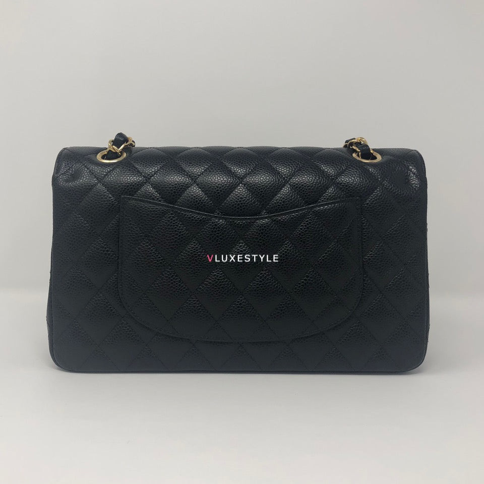 Brand new with tags and receipt! Classic Black Medium Caviar with gold hardware. Made in France/25 series/2018. The bag comes full set, authenticity card, receipt dust bag, box, care booklet, felt, camelia and lace with additional third-party Entrupy Authenticity Certificate.