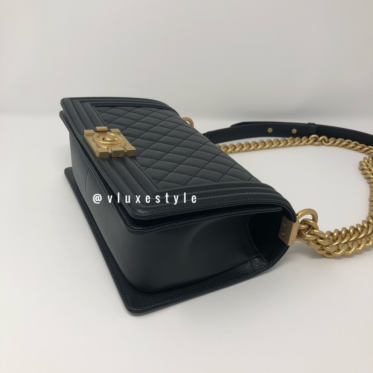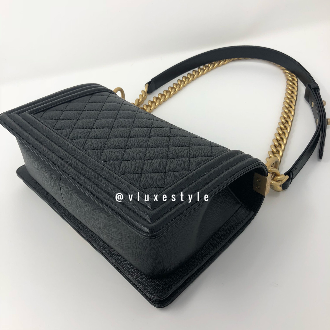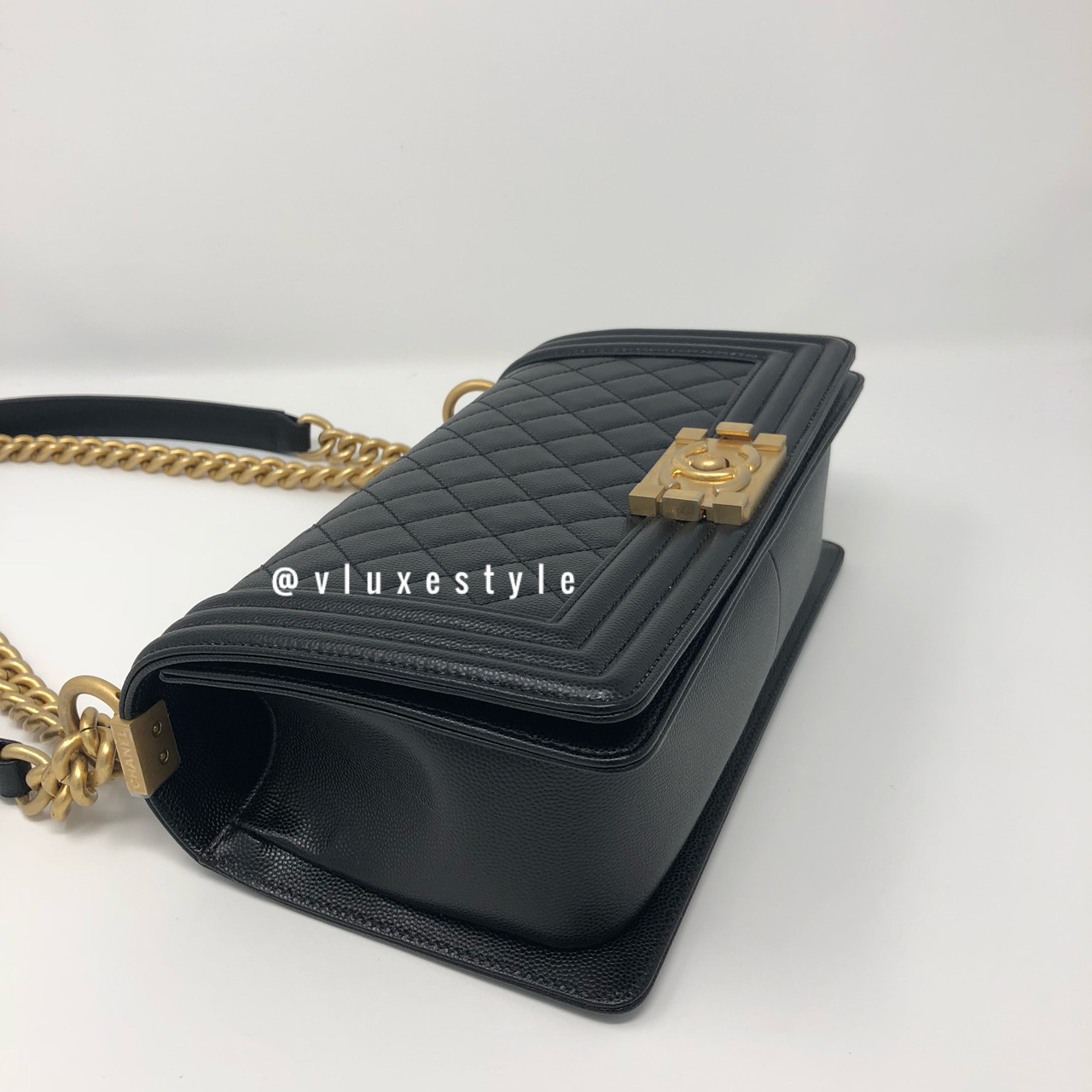 LIKE NEW Le Boy Old Medium Black Quilted Caviar with brushed gold hardware, the caviar is thick jet black caviar in excellent like new condition. Made in France/26 series/June 2018