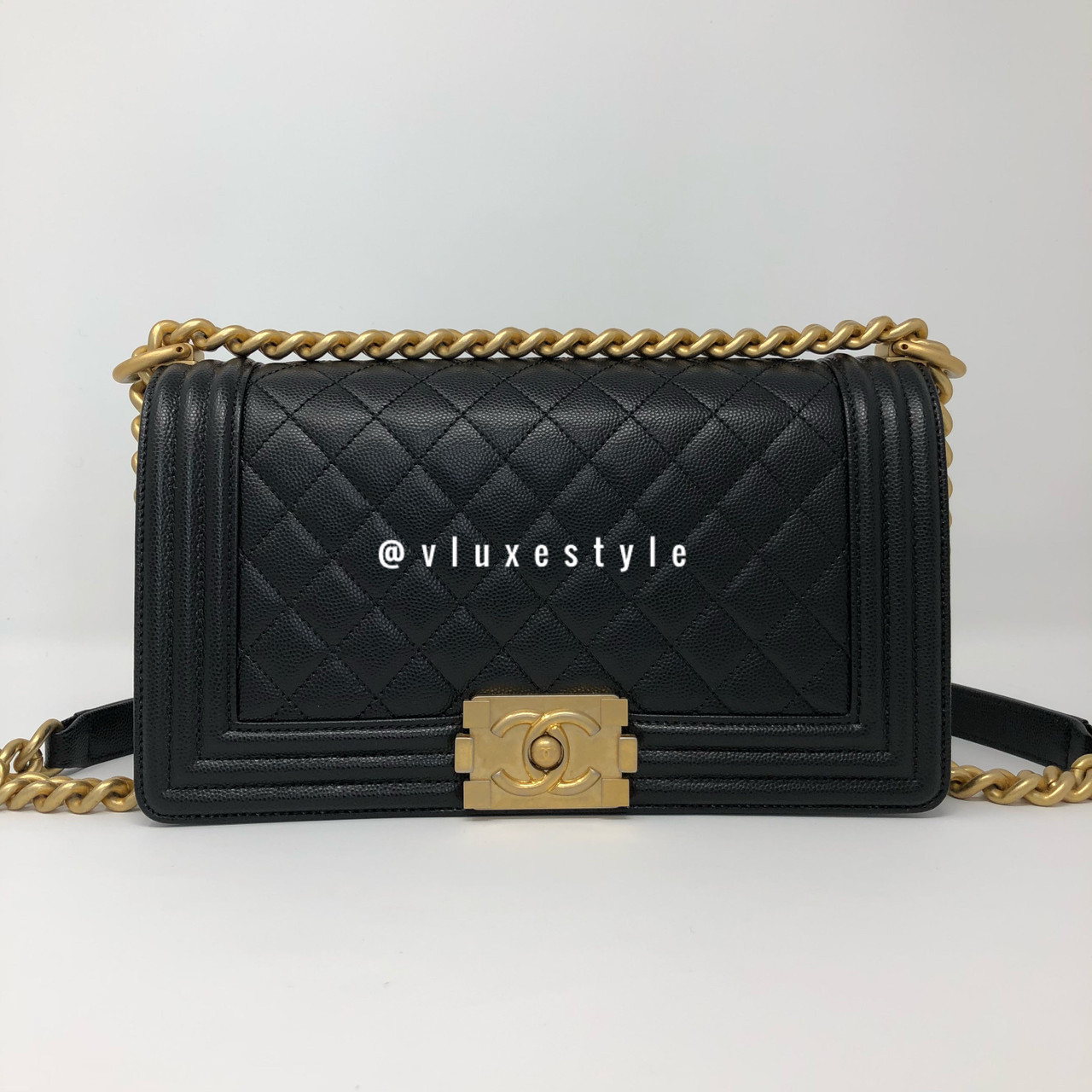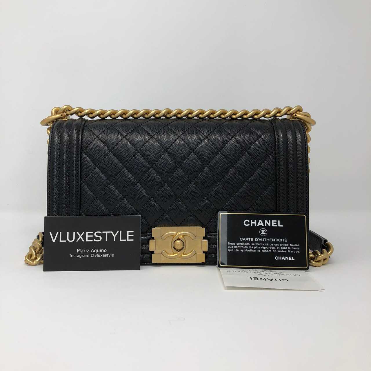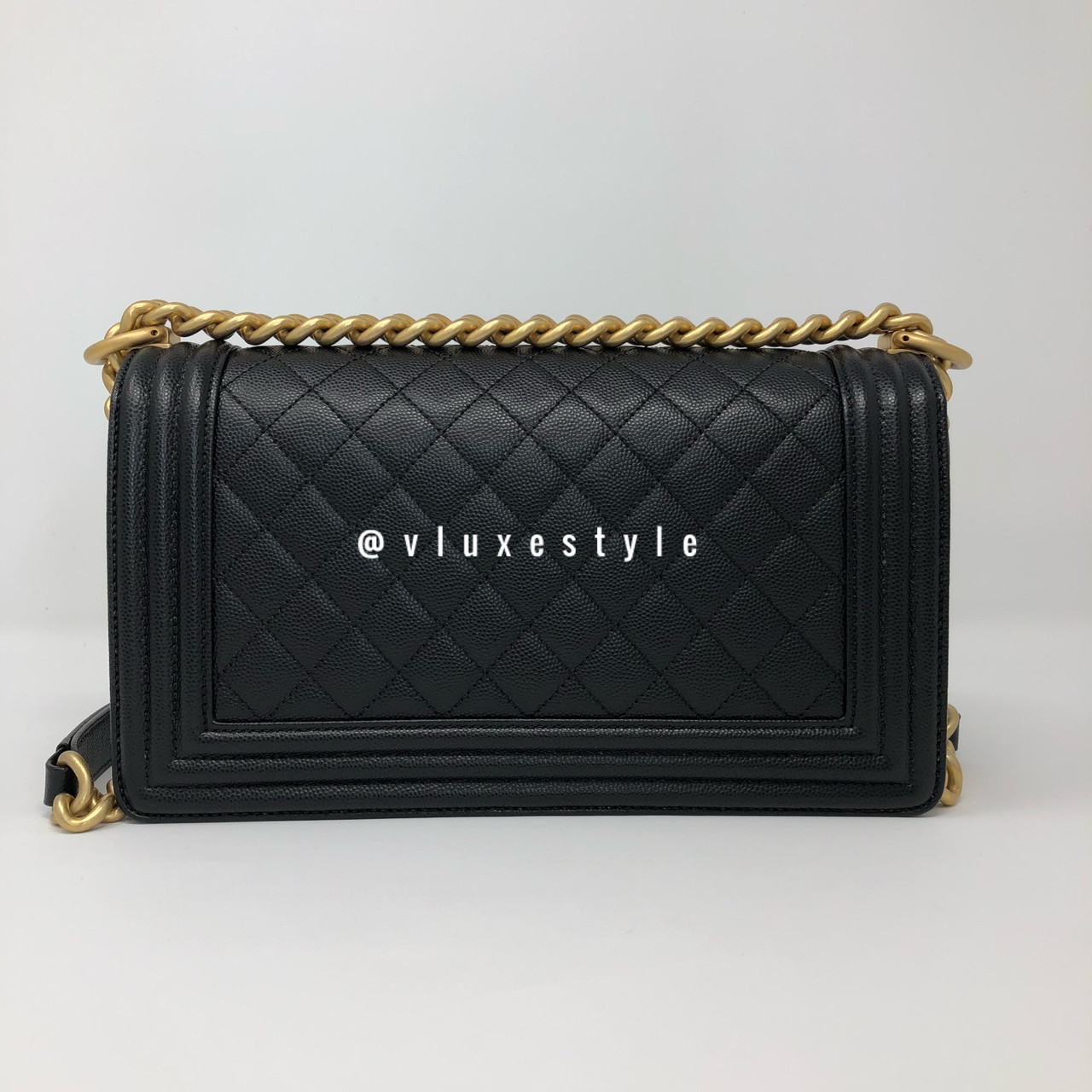LIKE NEW Le Boy Old Medium Black Quilted Caviar with brushed gold hardware, the caviar is thick jet black caviar in excellent like new condition. Made in France/26 series/June 2018