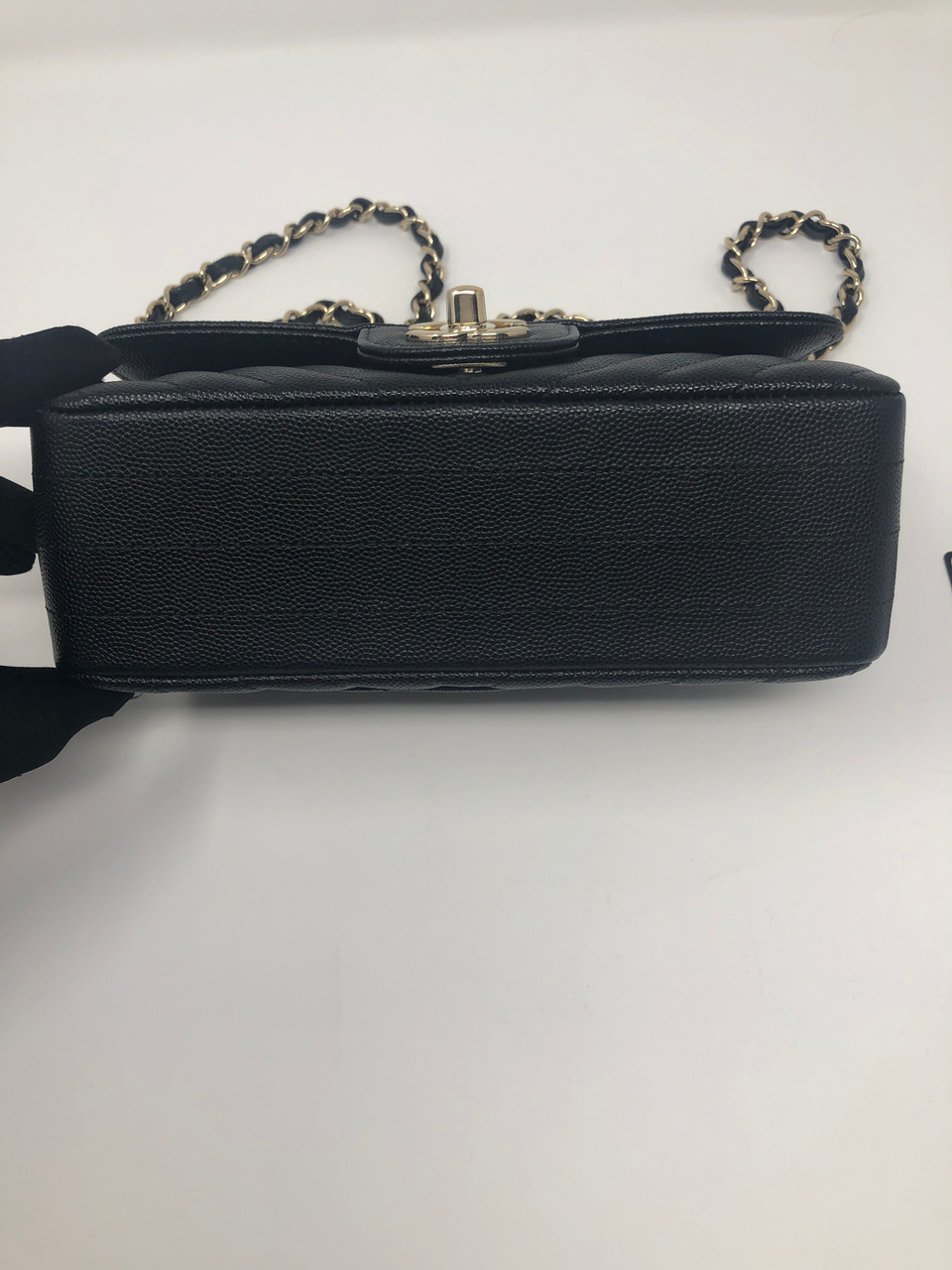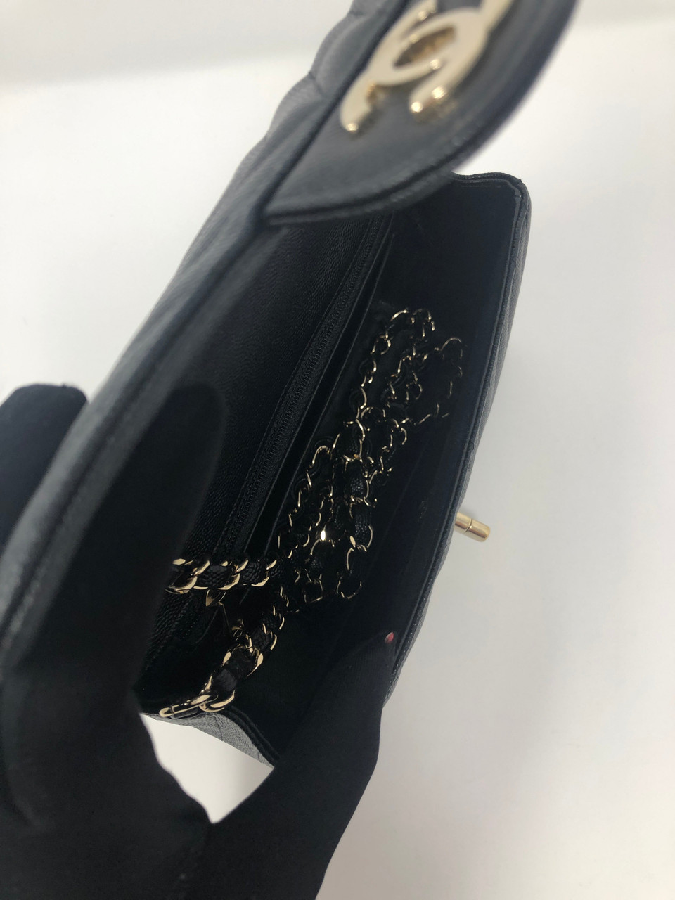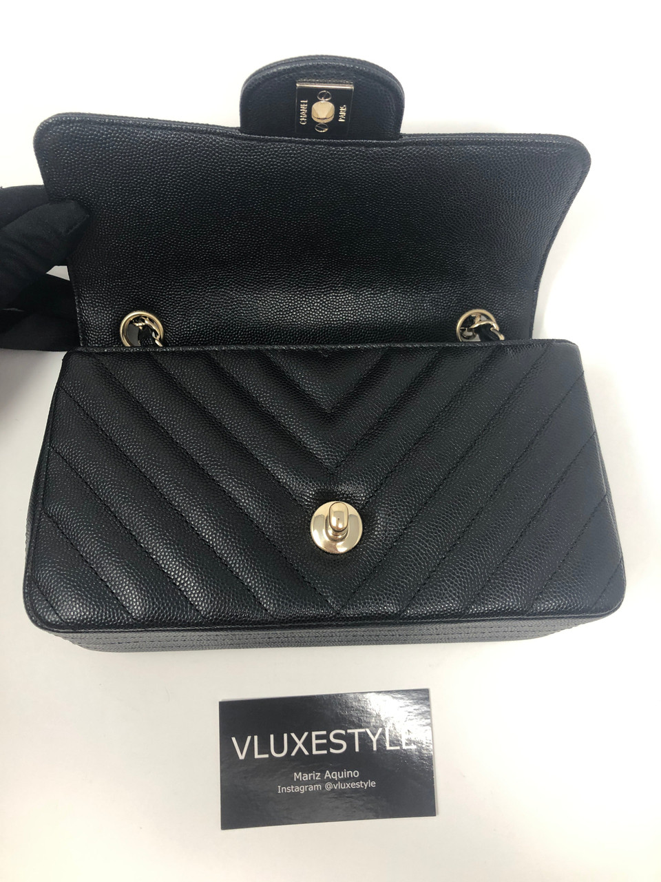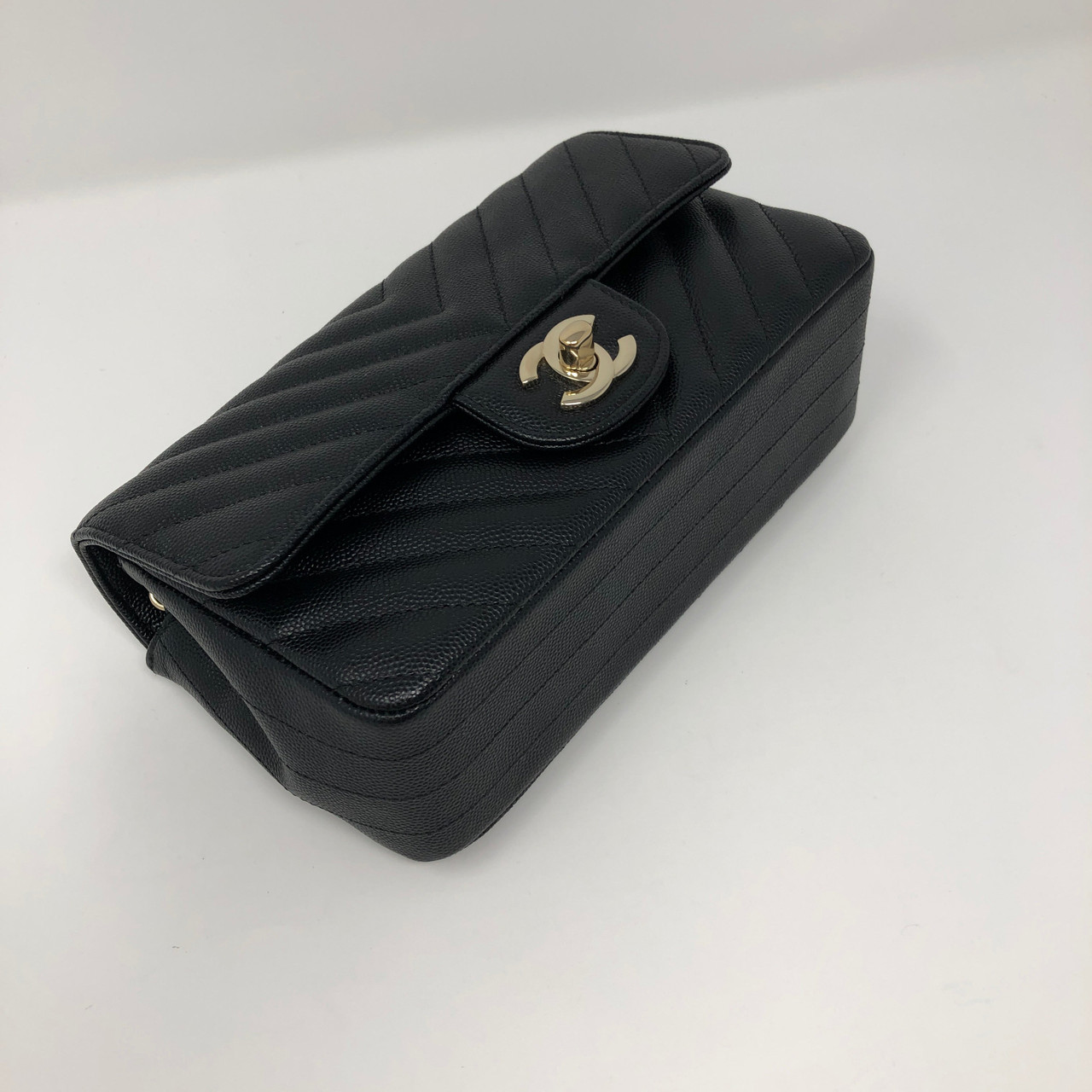 Very hard to find these days! The highly sought after! 18B Mini Classic Mini Rectangular Black Caviar with light gold hardware. Like new condition, used few times, Made in France/26 series/Aug 2018. (Strap drop: 23 , Dimensions: 8L x 5H x 2.5W)