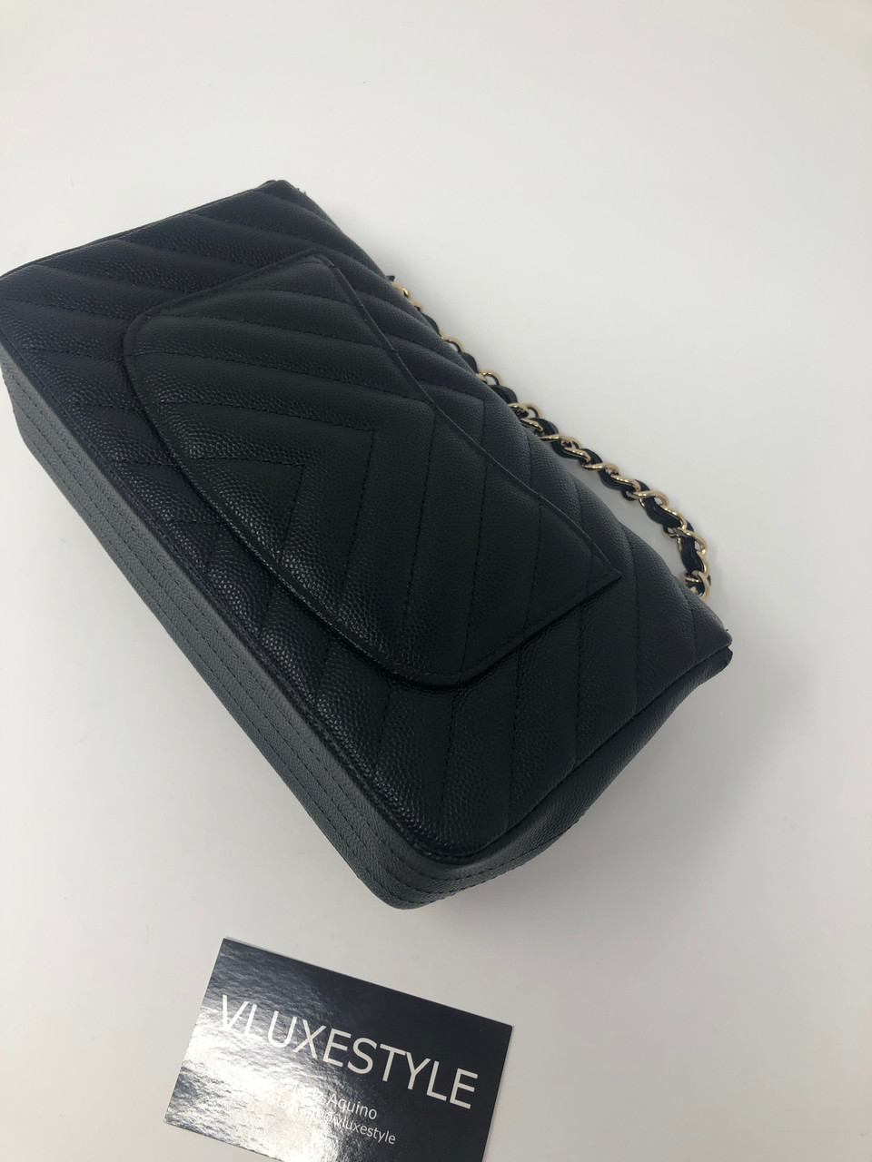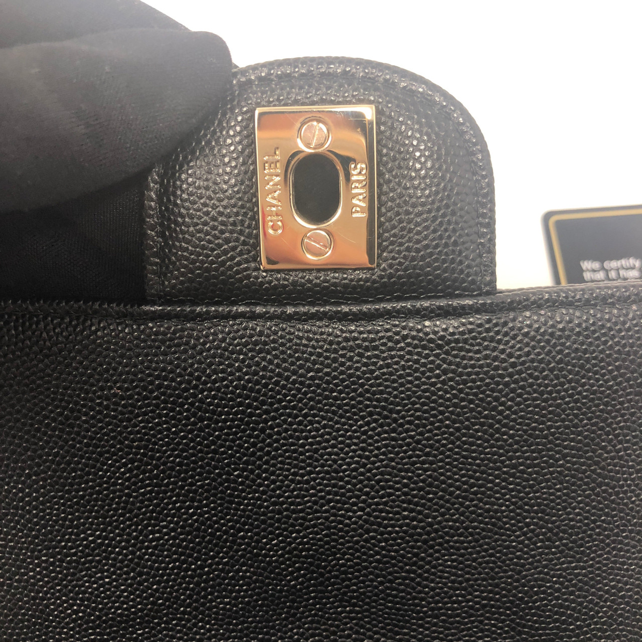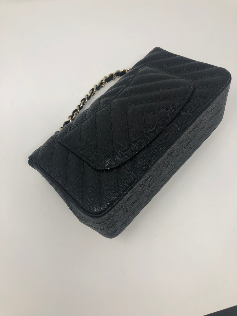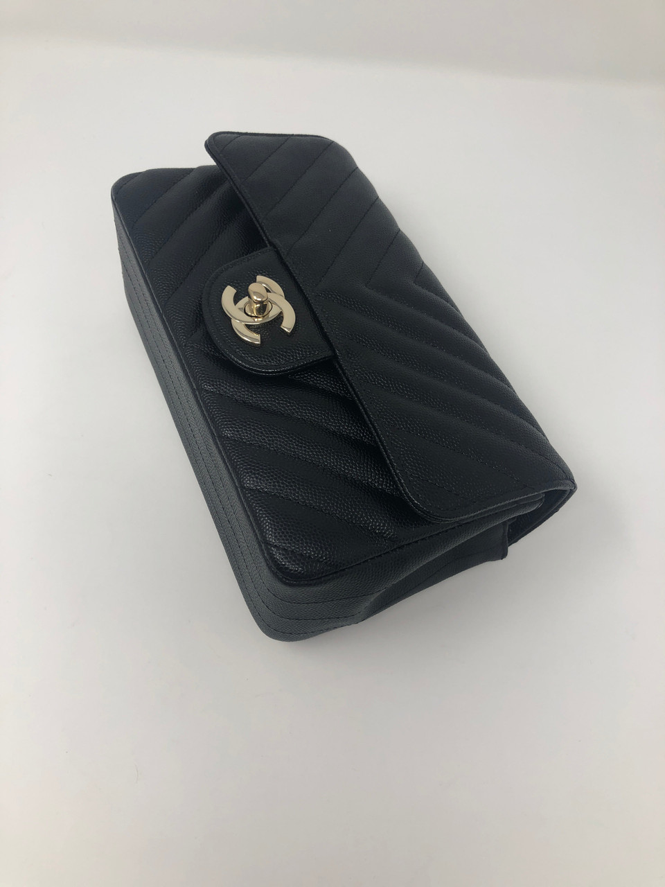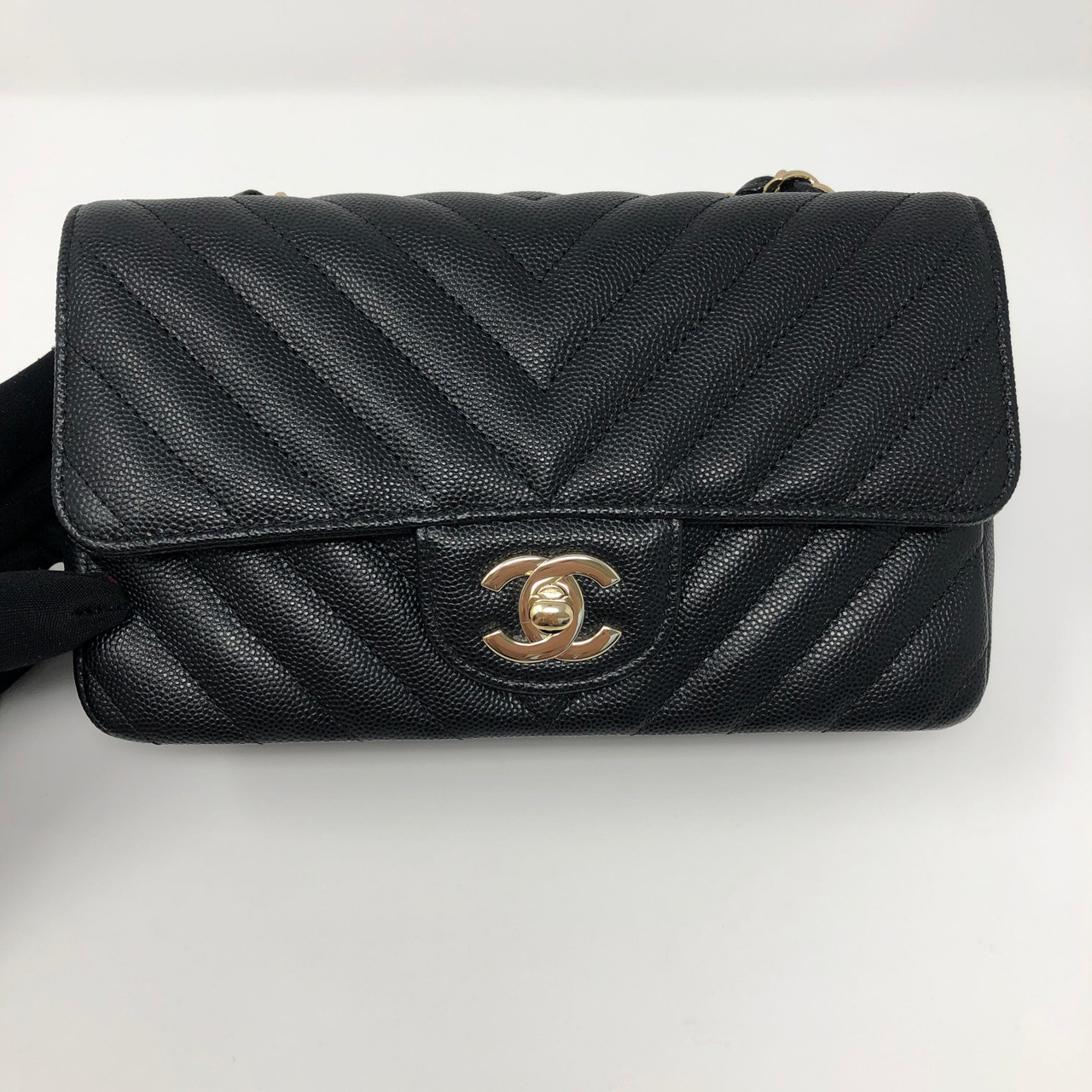Very hard to find these days! The highly sought after! 18B Mini Classic Mini Rectangular Black Caviar with light gold hardware. Like new condition, used few times, Made in France/26 series/Aug 2018. (Strap drop: 23 , Dimensions: 8L x 5H x 2.5W)